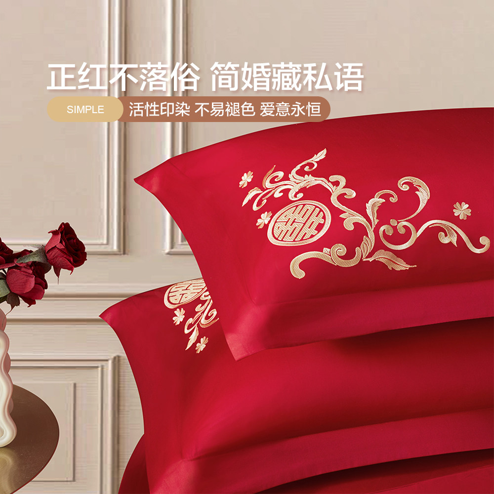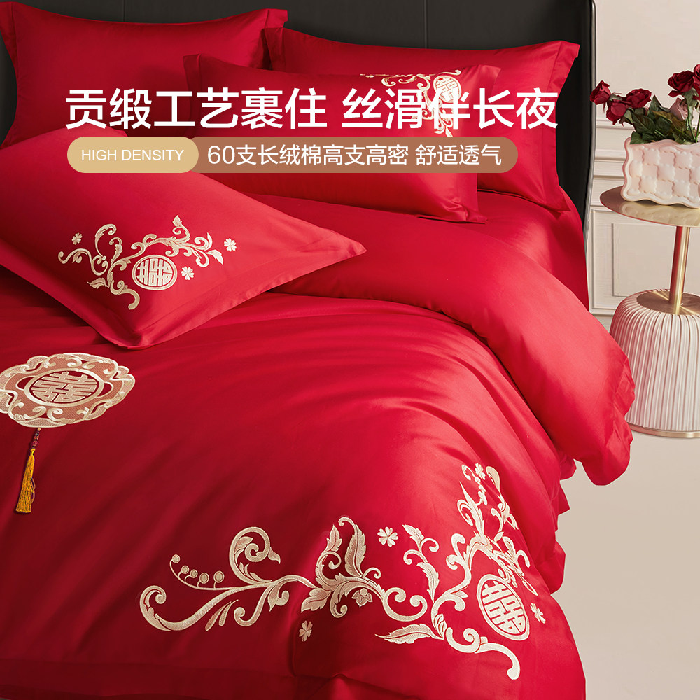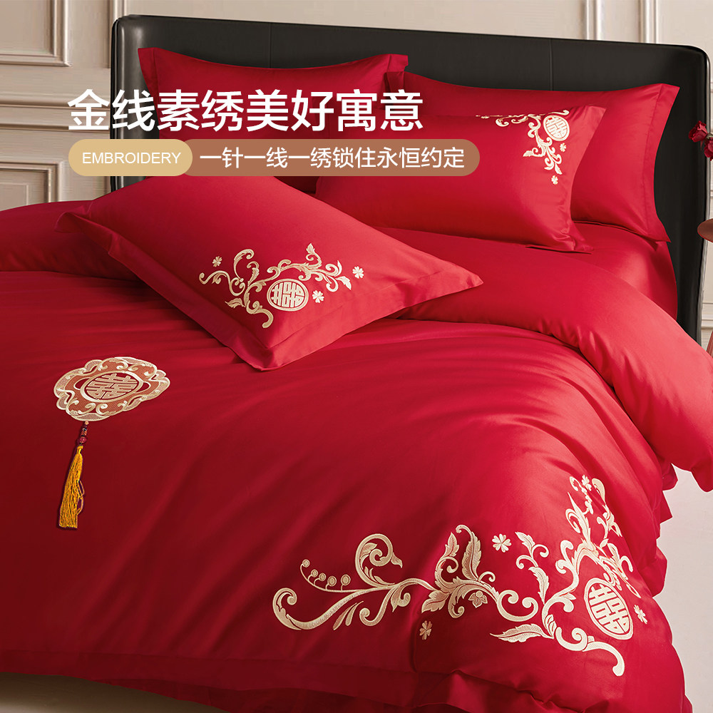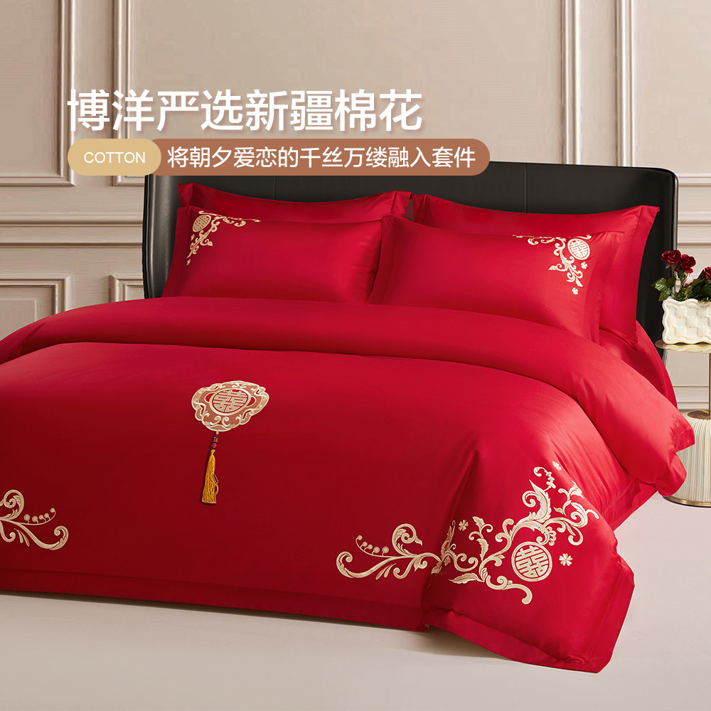 博洋红色婚庆四件套全棉结婚床上用品床单纯棉婚嫁被套喜庆
