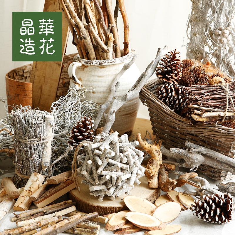 晶华自然干燥木头树皮白桦树段白桦树皮原木片树枝球橱窗陈列道具