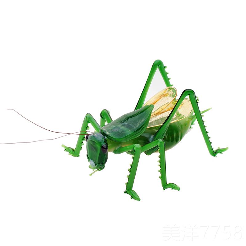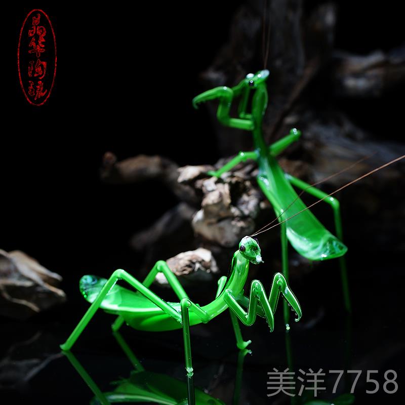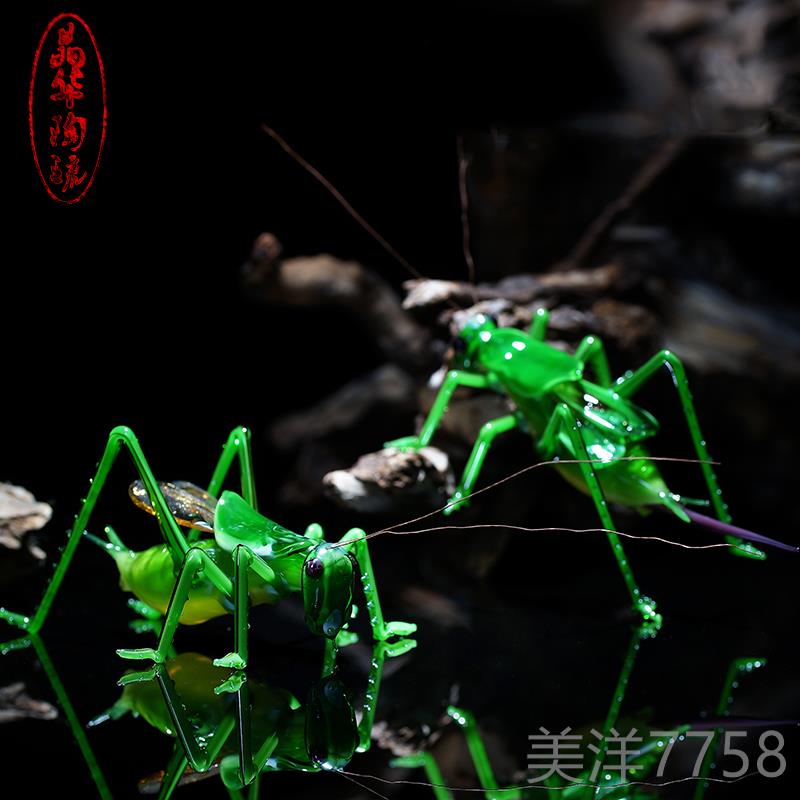 高档琉摆璃仿真蝈蝈螳昆虫小件微螂景观装饰送父亲老人玻盆璃工艺