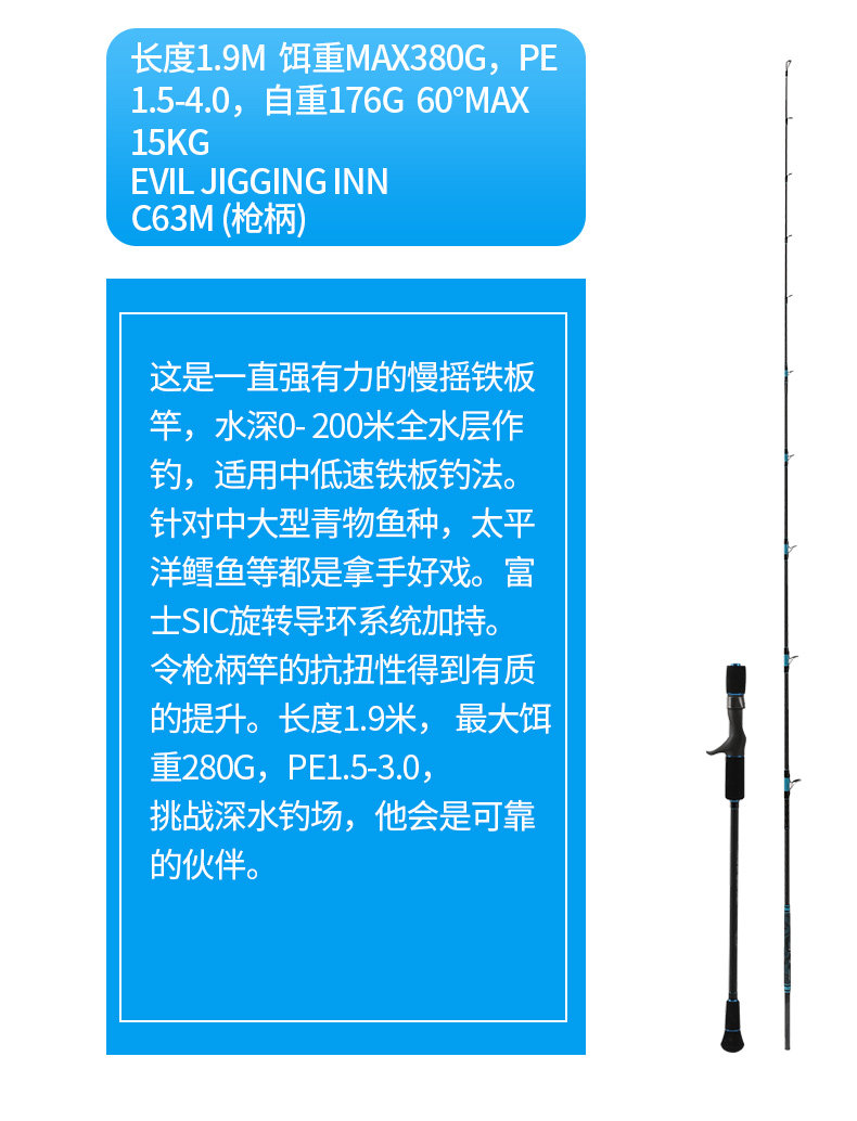 恶魔船钓铁板竿轻型慢摇一本半近海船竿带鱼鲅鱼马鲛鱼黄条鰤鳕鱼
