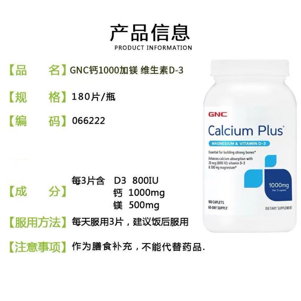 GNC柠檬酸钙碳酸钙成人钙片180片