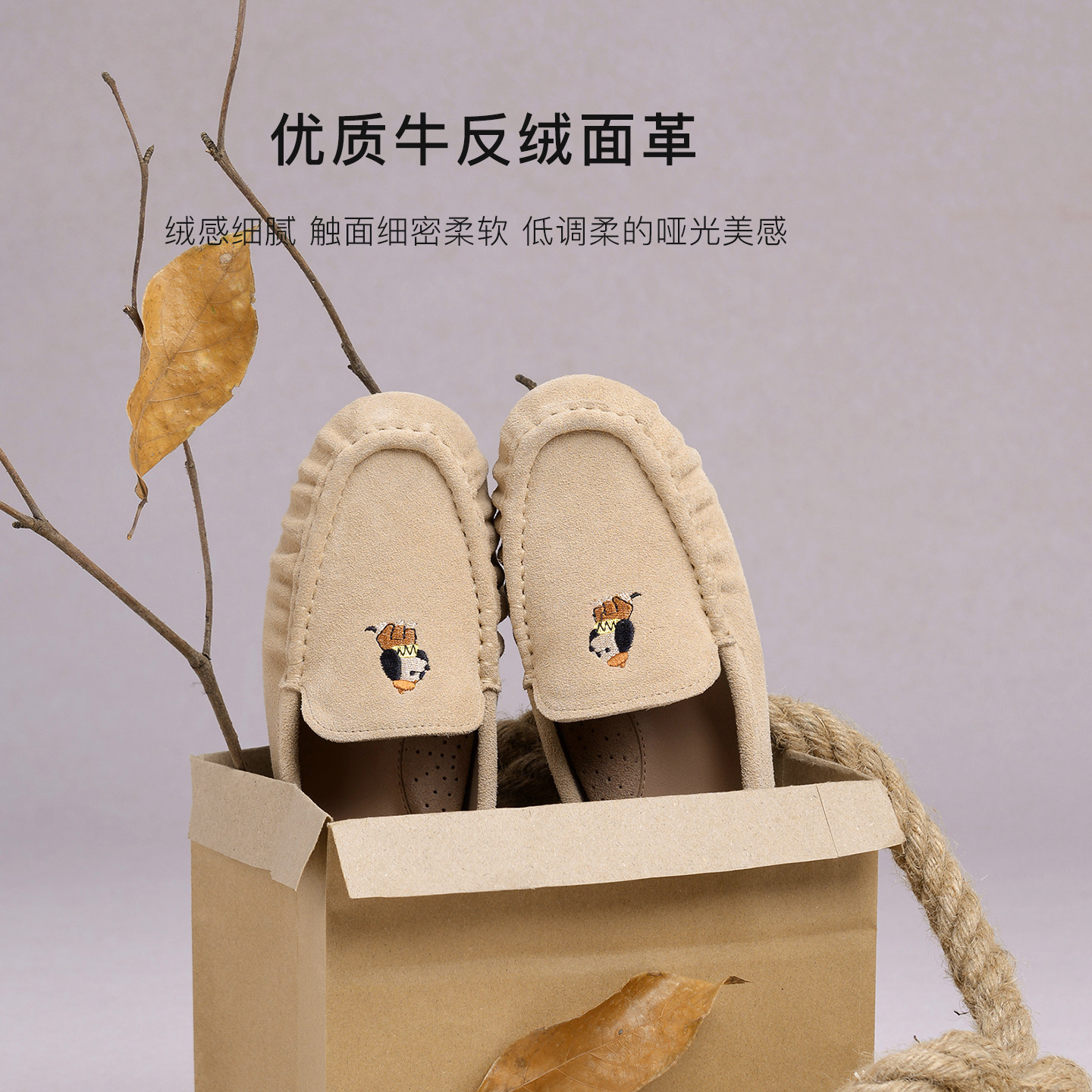 REEMOOR复古圆头牛皮小狗豆豆鞋