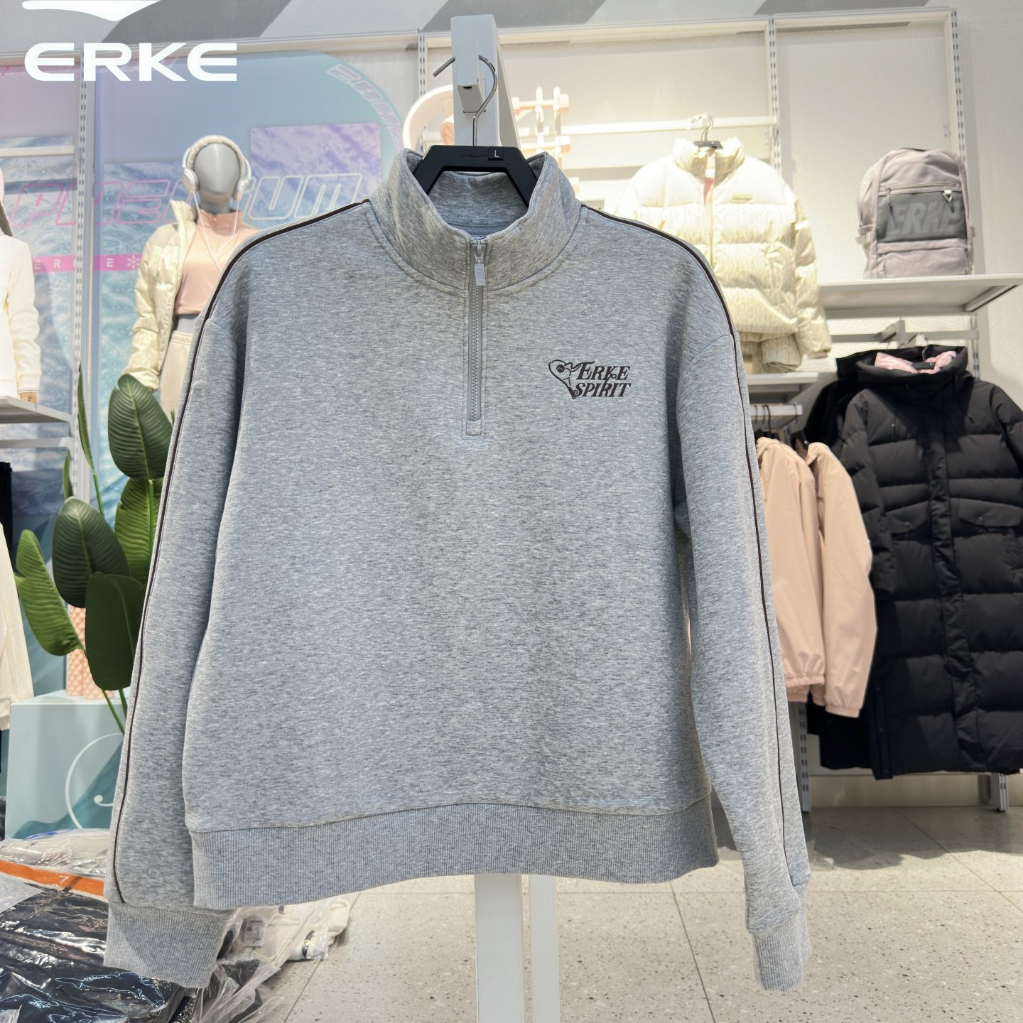 鸿星尔克女款加绒拉链套头卫衣