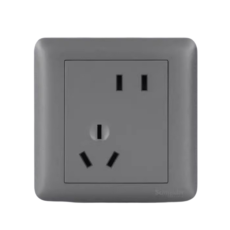 施耐德开关插座畅意灰色五孔单开双控暗装家用86型空调电脑面板插