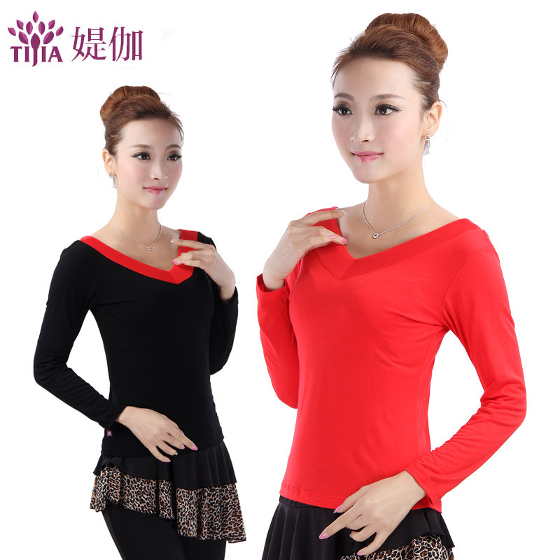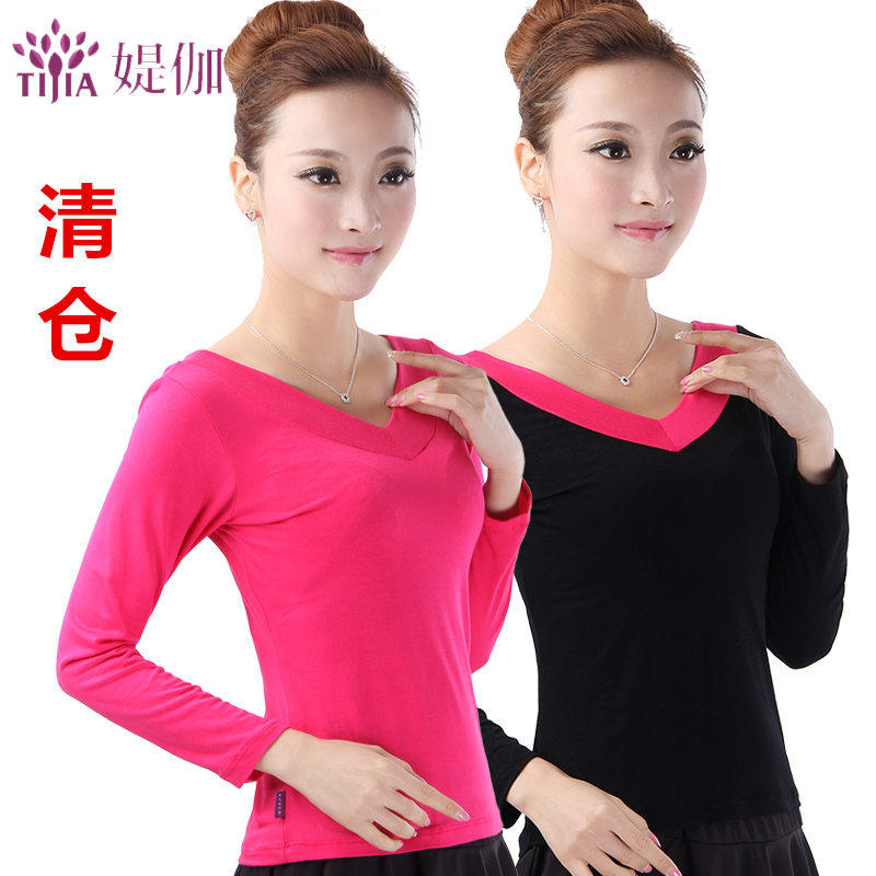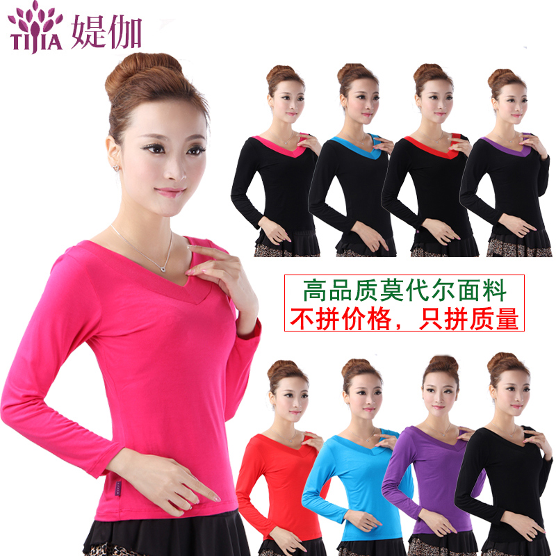 跳舞衣服广场舞上衣长袖莫代尔舞蹈服装拉丁舞黑色成人练习练功服
