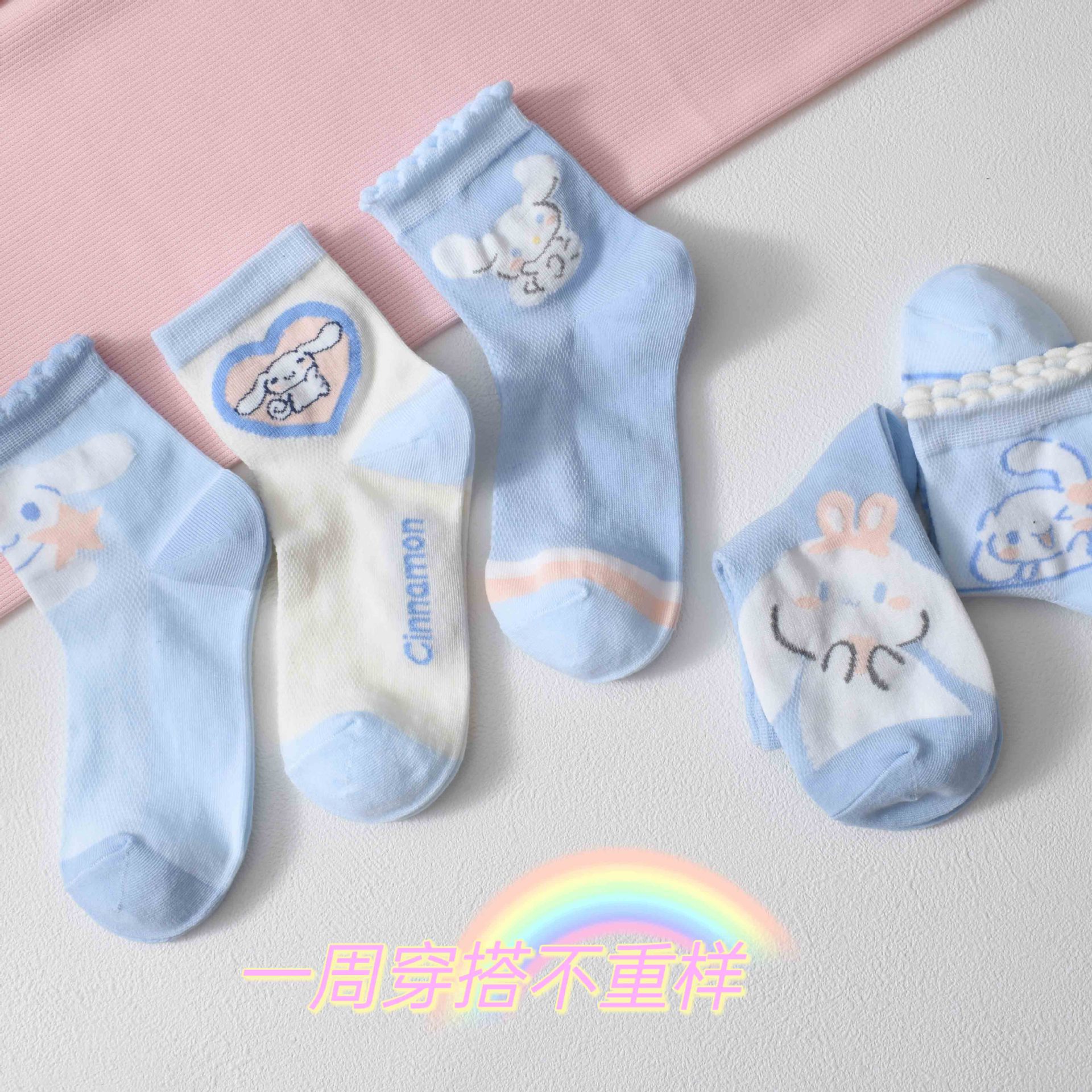 玉桂狗袜子女儿童夏季薄款cinnamoroll棉袜卡通图 大耳狗透气棉袜