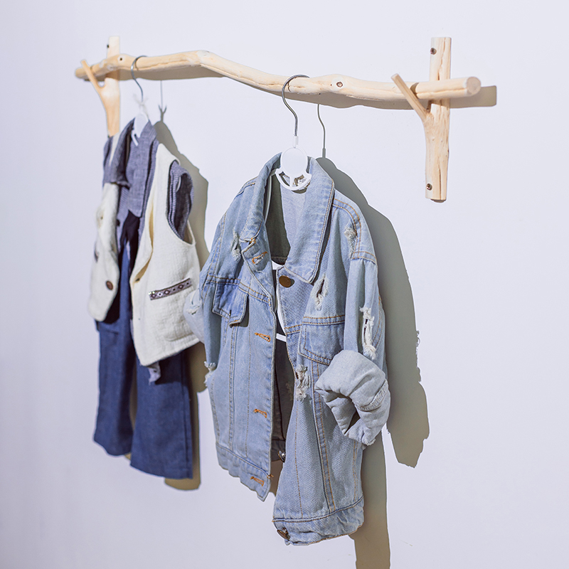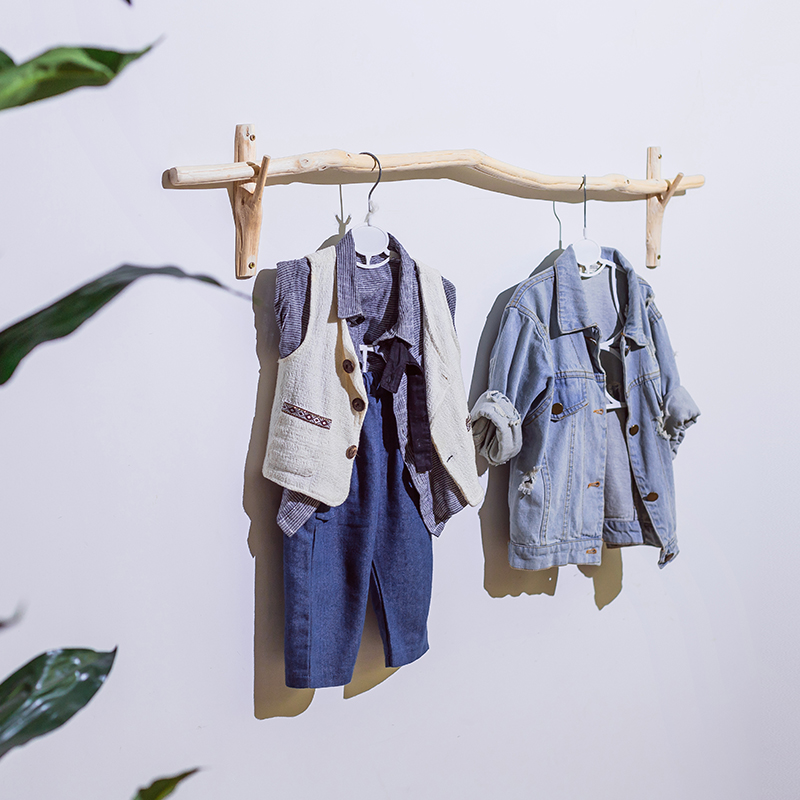 童装店服装店壁挂式实木挂衣杆干树枝原木女装展示架装饰干枝货架