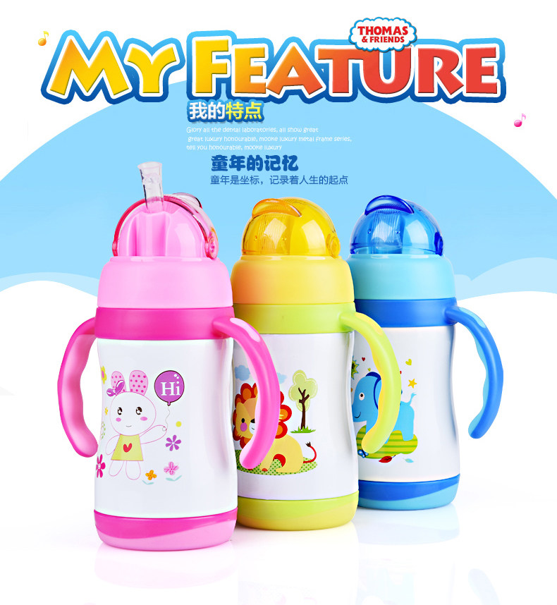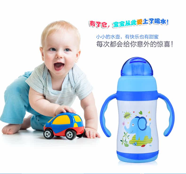 费雪嘉德仕儿童保温杯防滑防摔手柄软吸嘴吸管刻度奶瓶宝宝专用杯