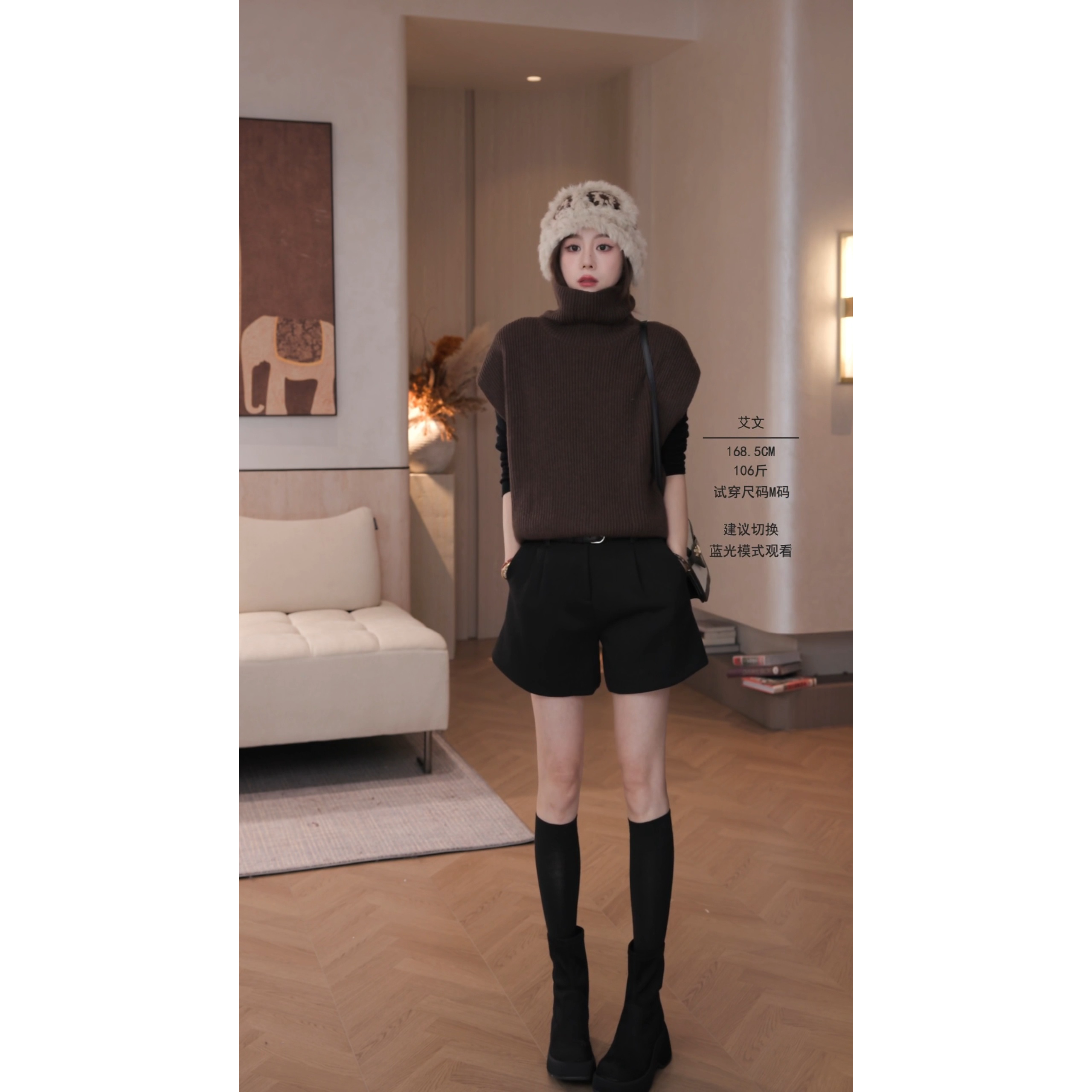 艾文文IRIS 摩登短裤 2025秋冬“醋酸羊毛”含腰带时尚韩版