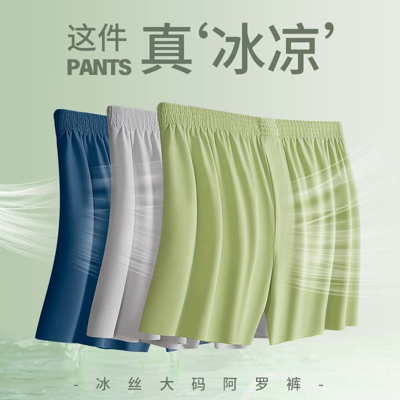 冰丝男士内裤阿罗裤男宽松大码平角裤无痕舒适透气四角裤睡裤短裤