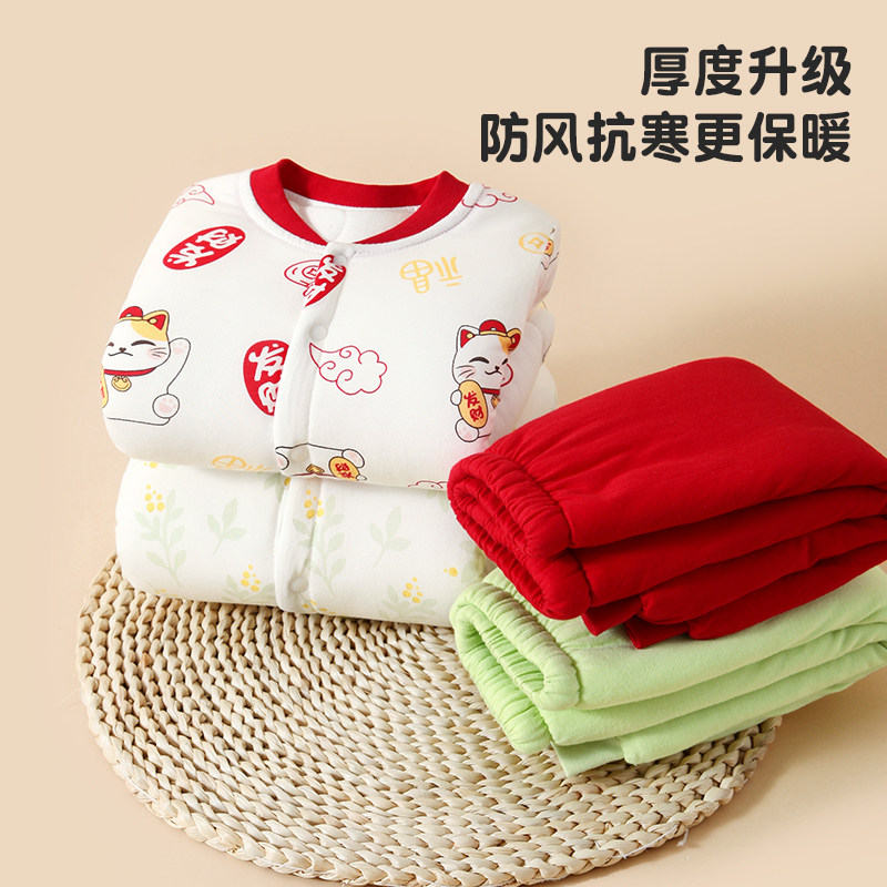 马卡乐男童居家外套儿童宝宝套装保暖三层夹棉裤棒球服加绒棉衣冬
