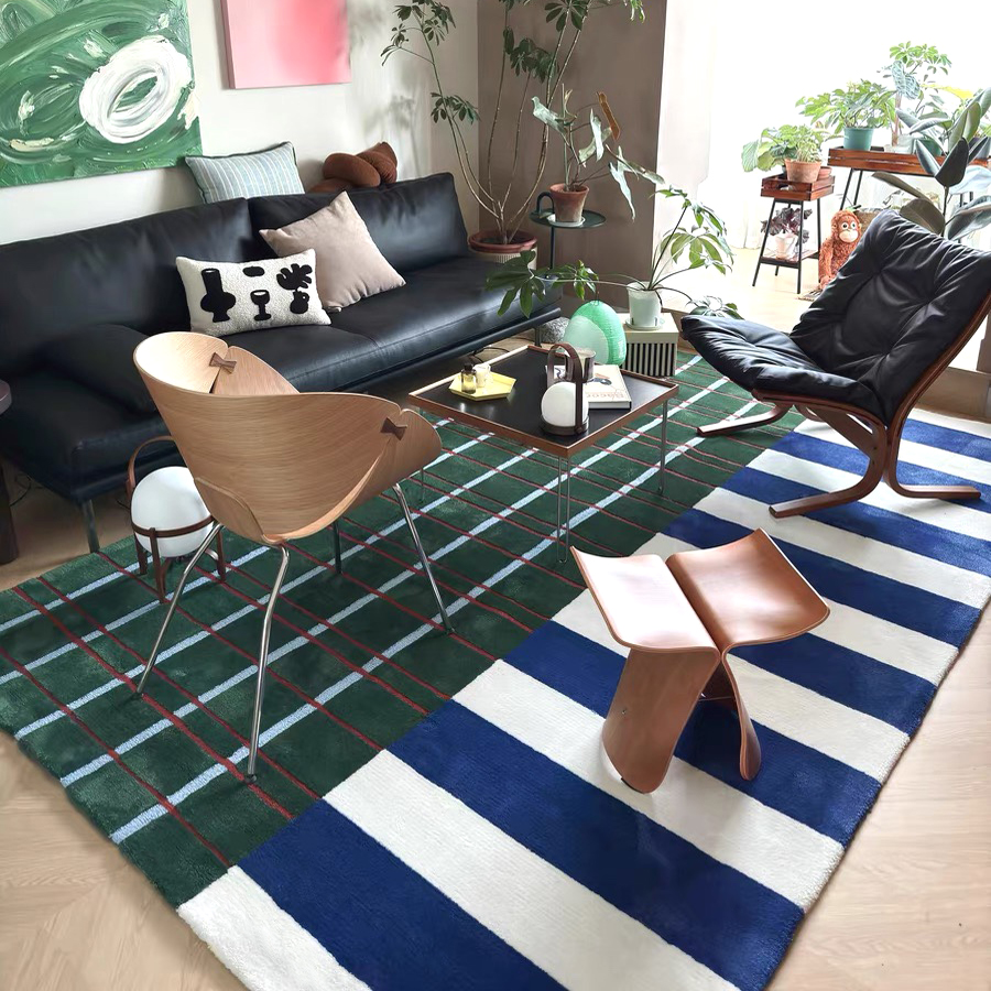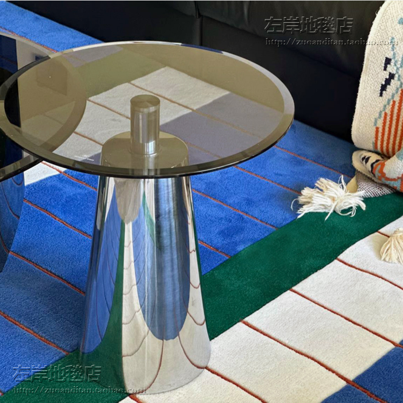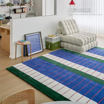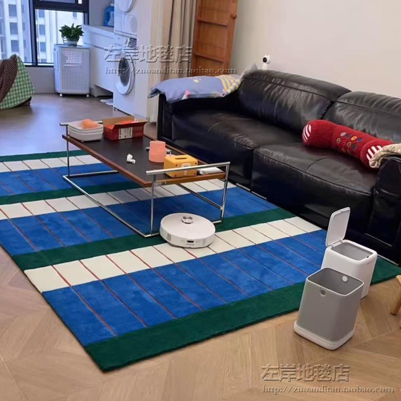 蓝色条纹复古多巴胺分贝地毯客厅茶几卧室床边书房衣帽间手工地毯