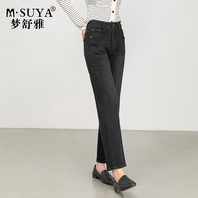 梦舒雅高腰直筒牛仔裤女2025年秋季新款百搭弹力显瘦九分烟管裤子