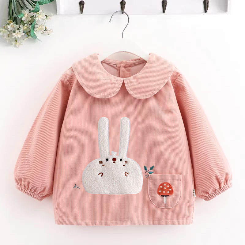 女宝宝罩衣婴儿围兜吃饭防水防脏儿童灯芯绒反穿衣围裙画画衣秋冬