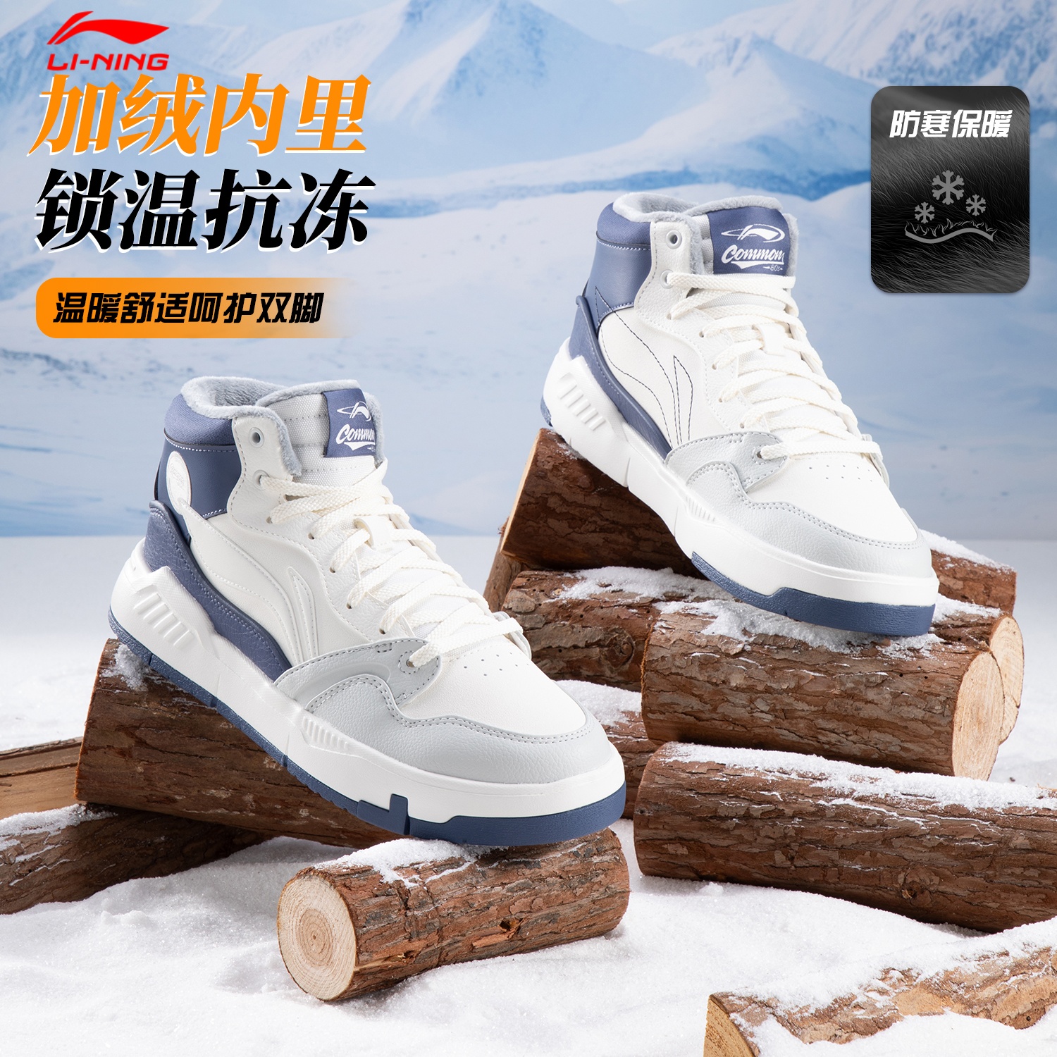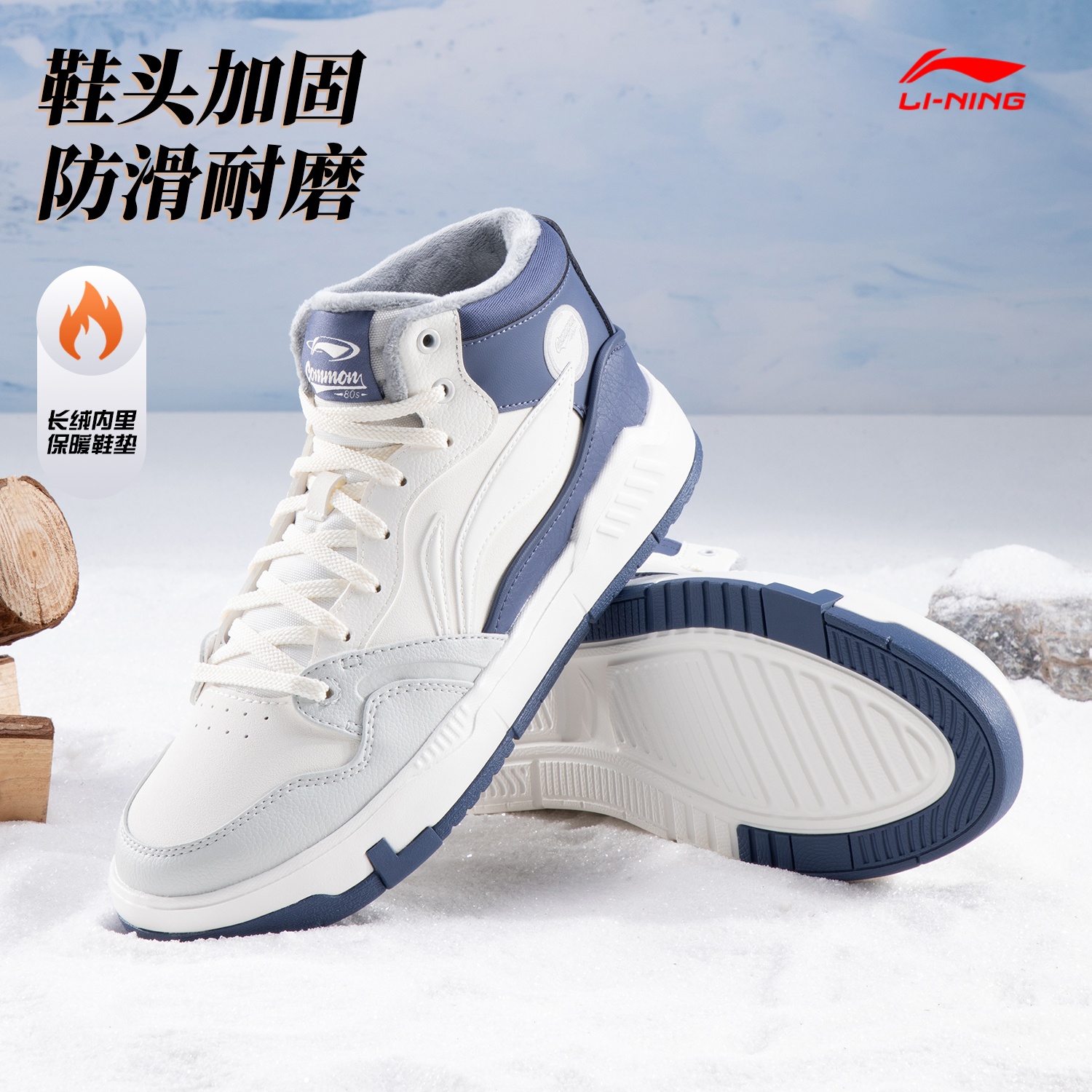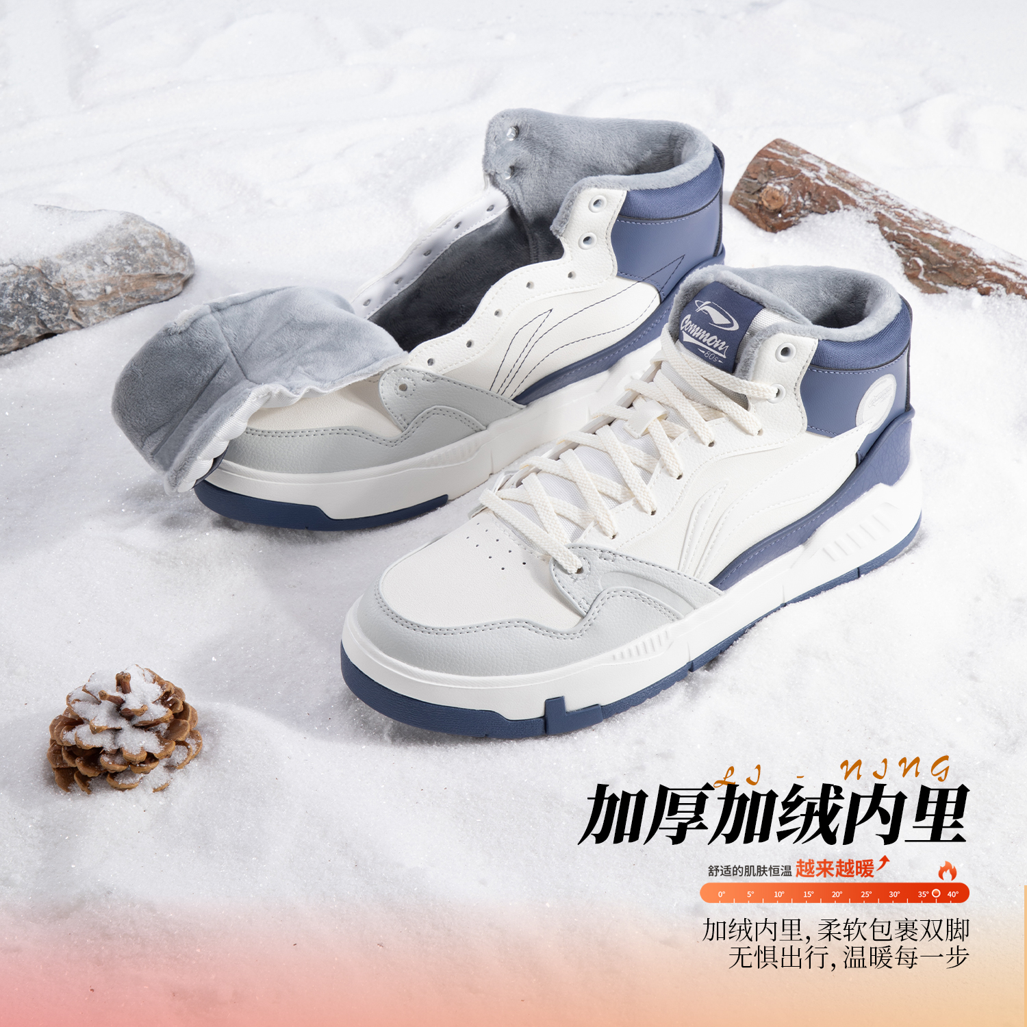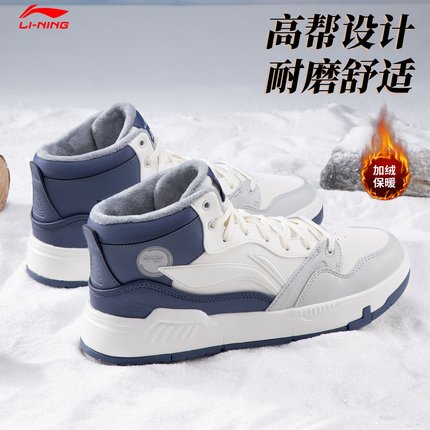李宁板鞋男鞋高帮加绒保暖棉鞋