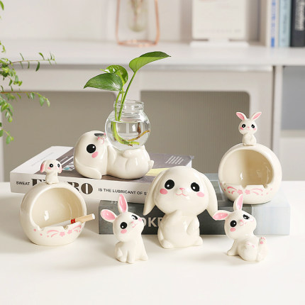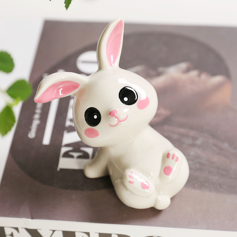 迷你陶瓷小兔子摆件办公桌面卡通可爱兔兔少女心房间装饰品礼物