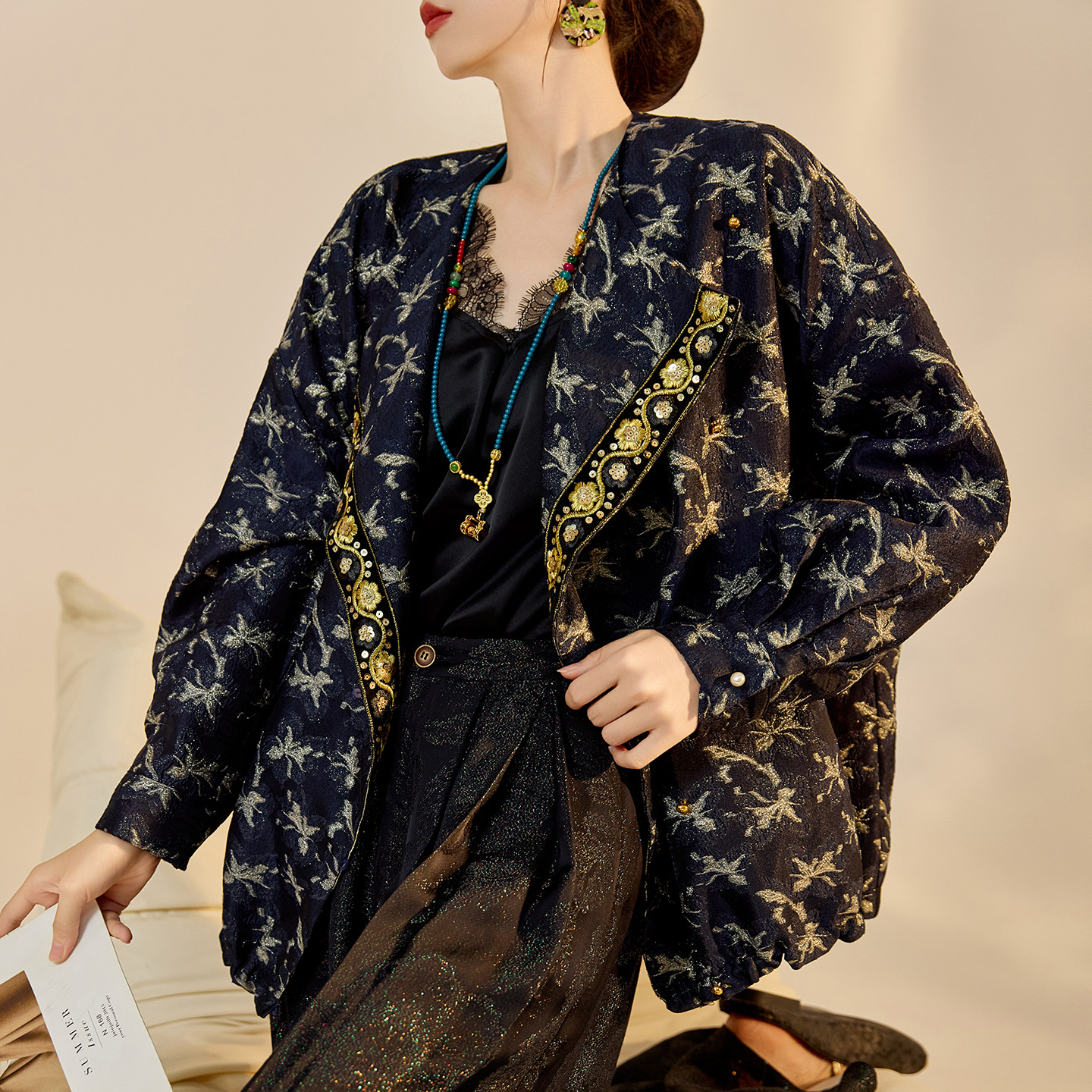 新中式亮片刺绣提花外套女夹克衫