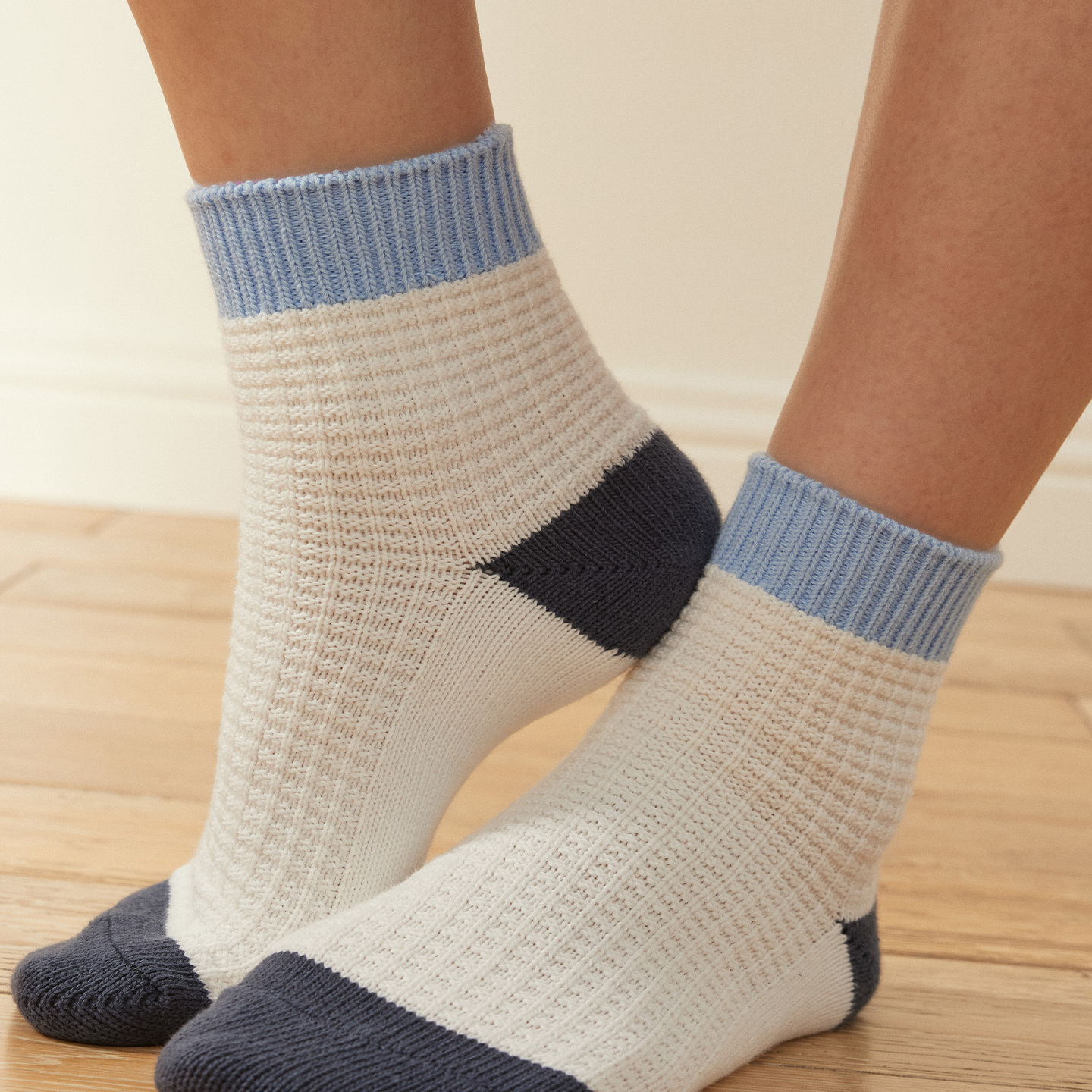 植棉家短袜女粗针格子秋冬棉袜拼色潮流2025新款矮筒女士短筒袜子