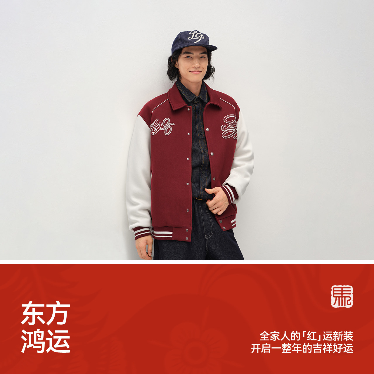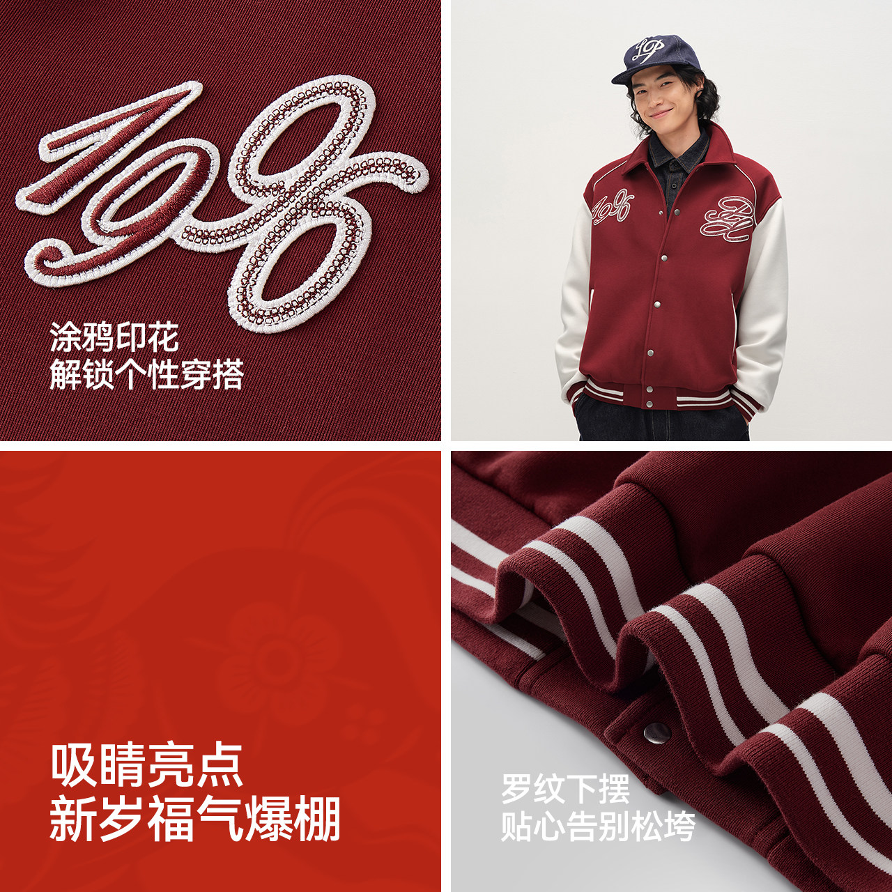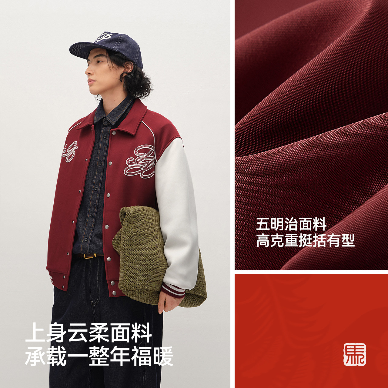 商场同款|森马夹克男春季学院风撞色棒球服2026新款情侣复古外套