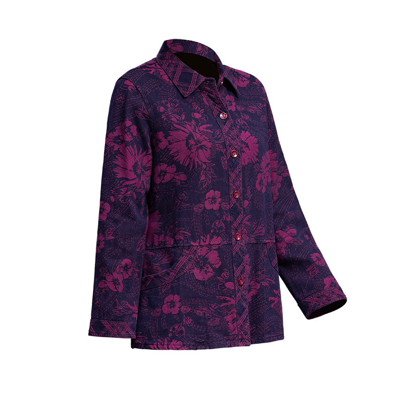 新款中老年女春秋纯棉长袖厚衬衣老人上衣加肥大码衬衫全棉妈妈装