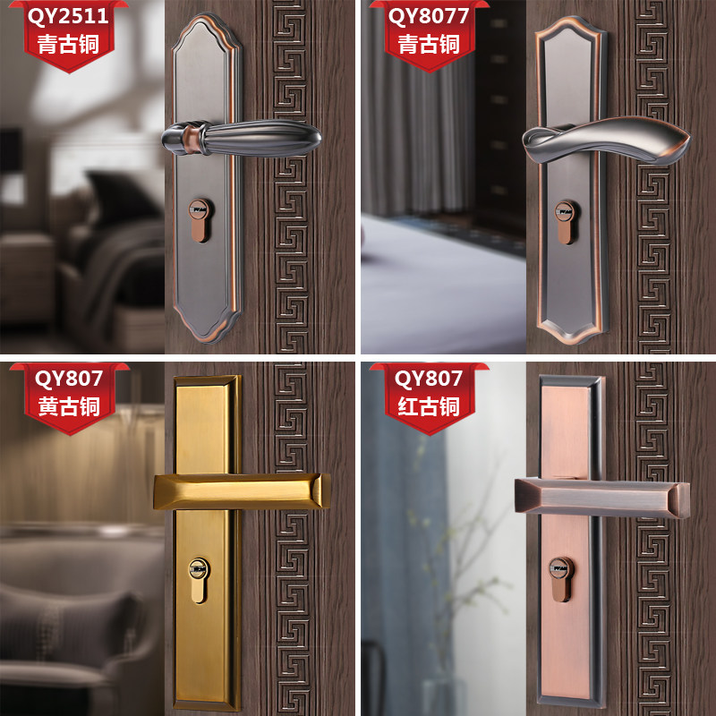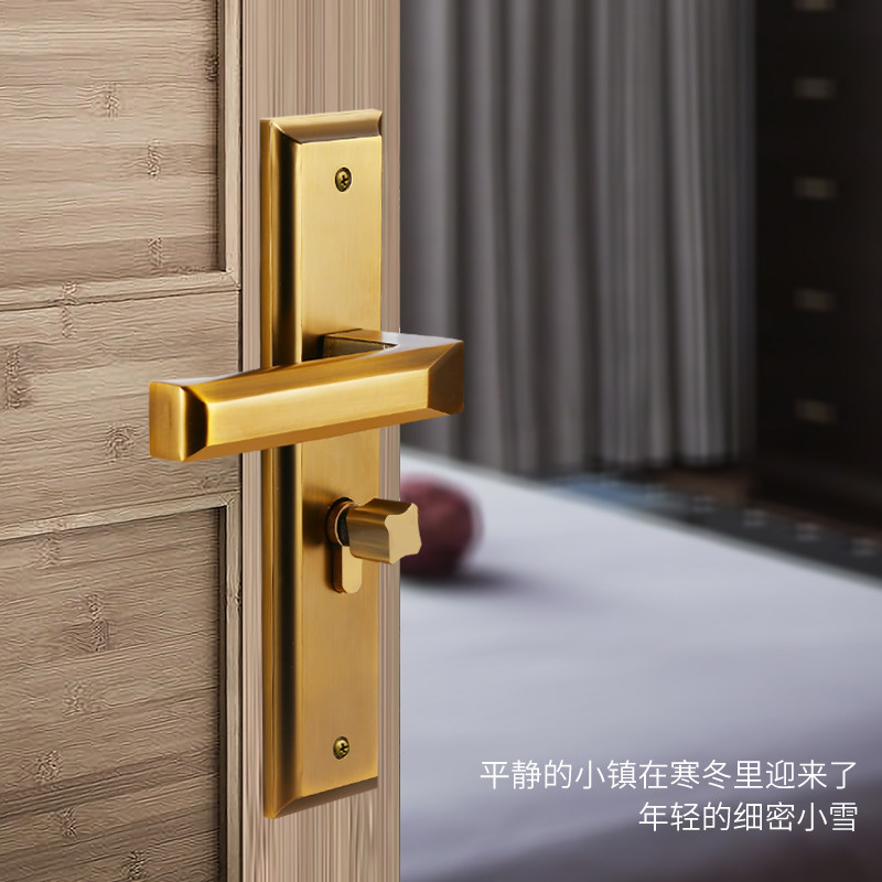 奇粤 室内门锁家用锁具实木金色卧室门锁房间静音欧式磁吸通用型
