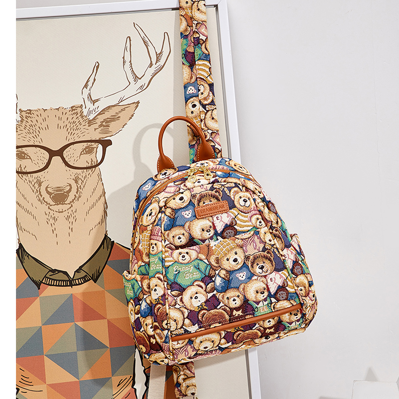 小熊依恋休闲女生双肩包防盗背包