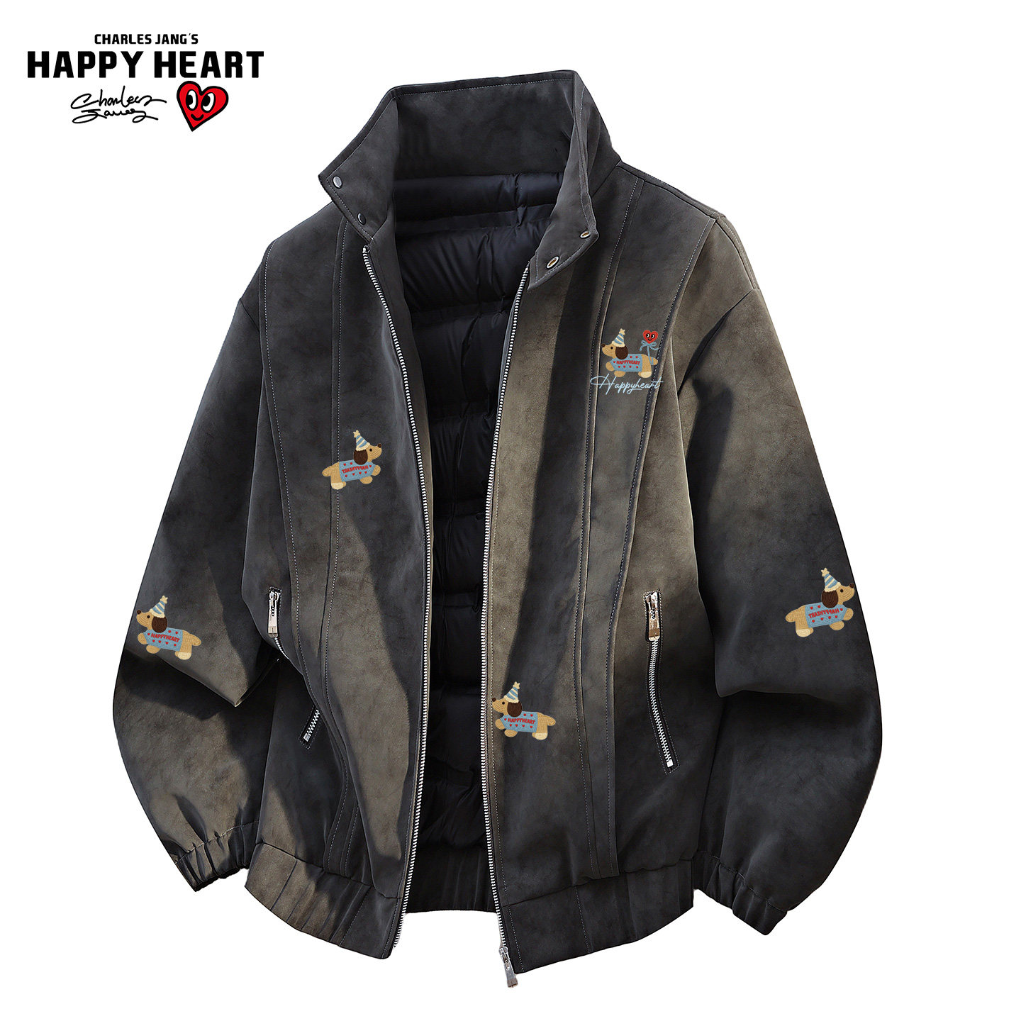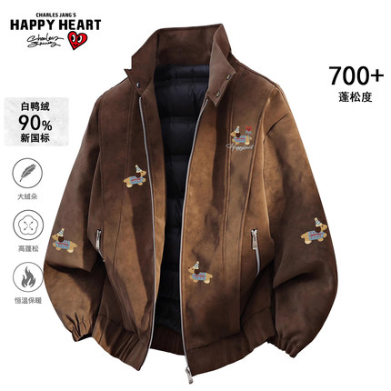 查尔斯桃心美式立领PU皮羽绒服男冬季90鸭绒加厚保暖解构防寒外套