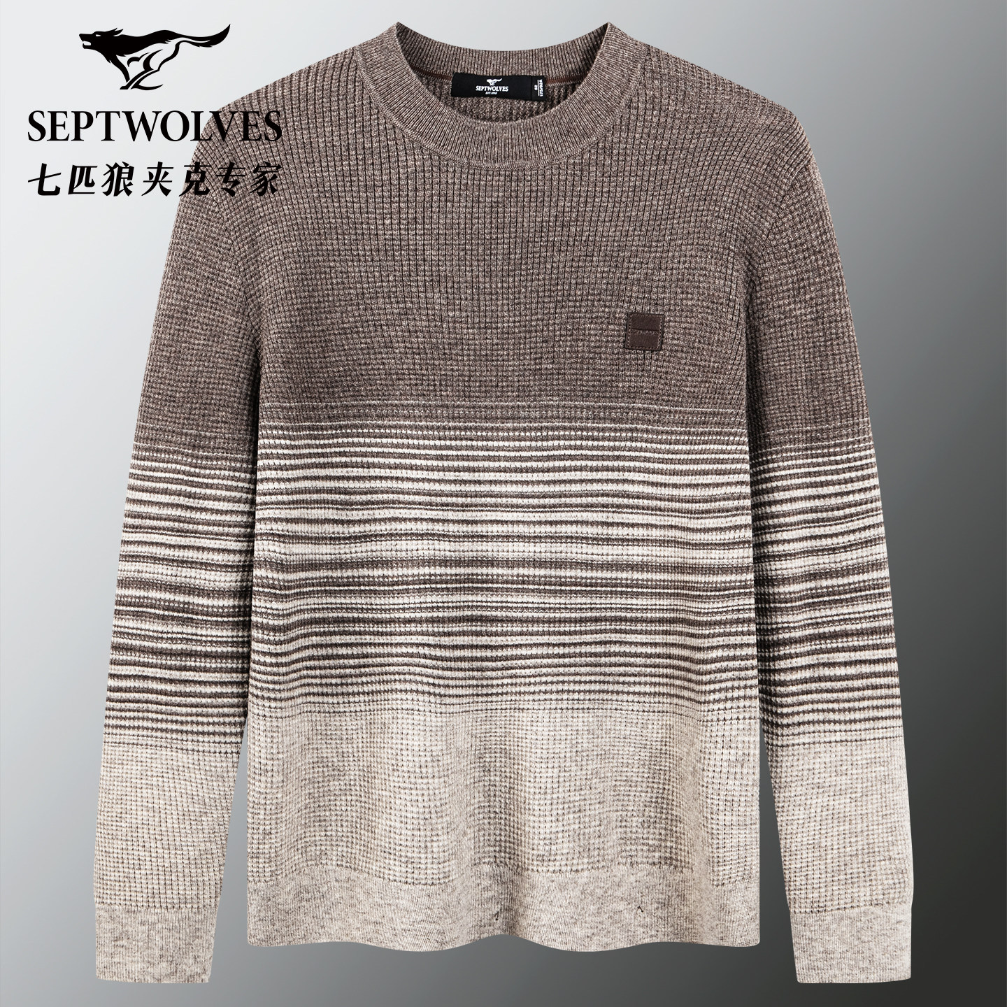 七匹狼圆领花纱渐变厚款羊毛衫男