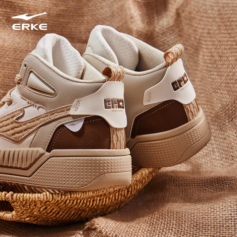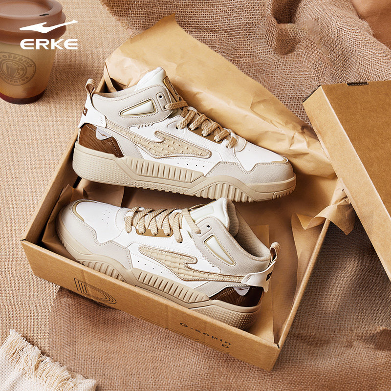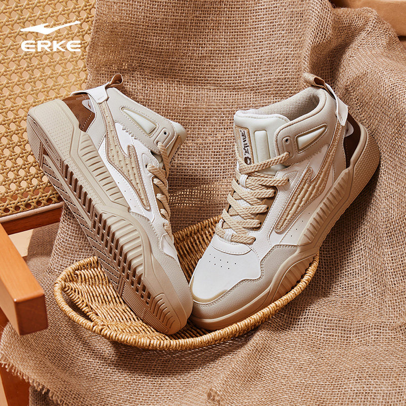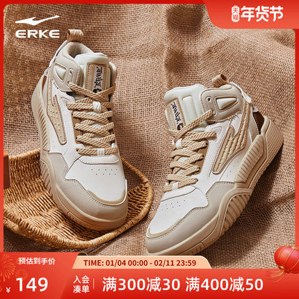 征服鸿星尔克男鞋高帮板鞋男冬季新款厚底休闲男士保暖运动鞋子男