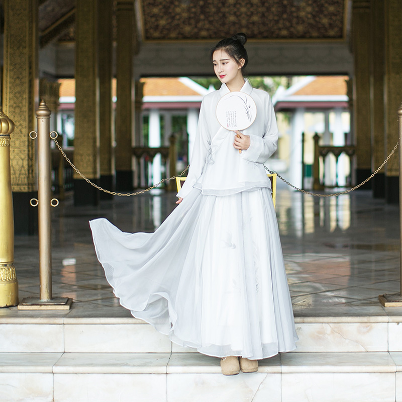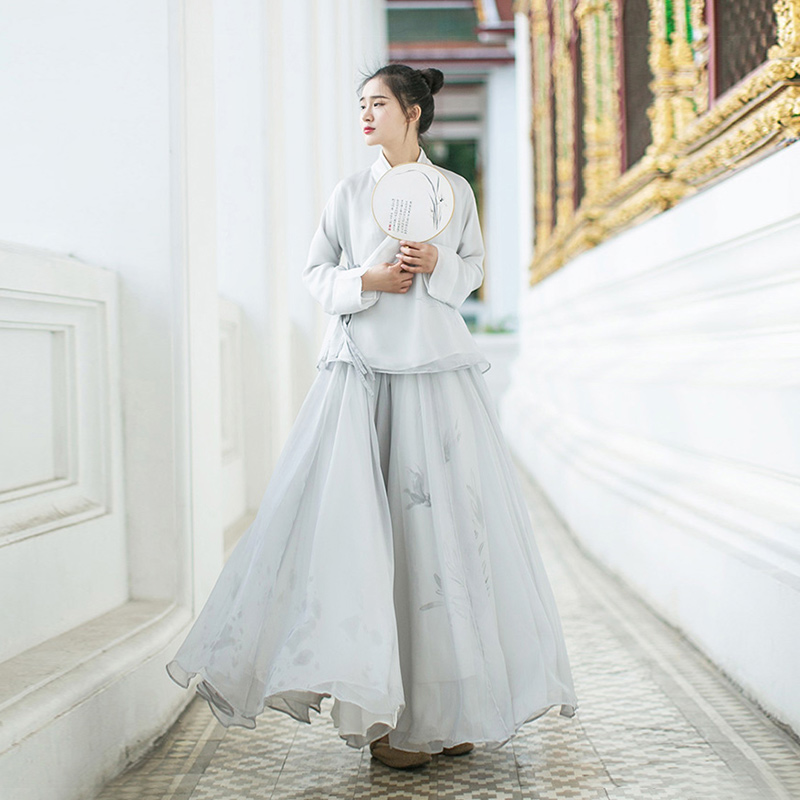 【现货】新中式国风雪纺衫女春夏复古汉服小衫上衣百搭半身裙套装