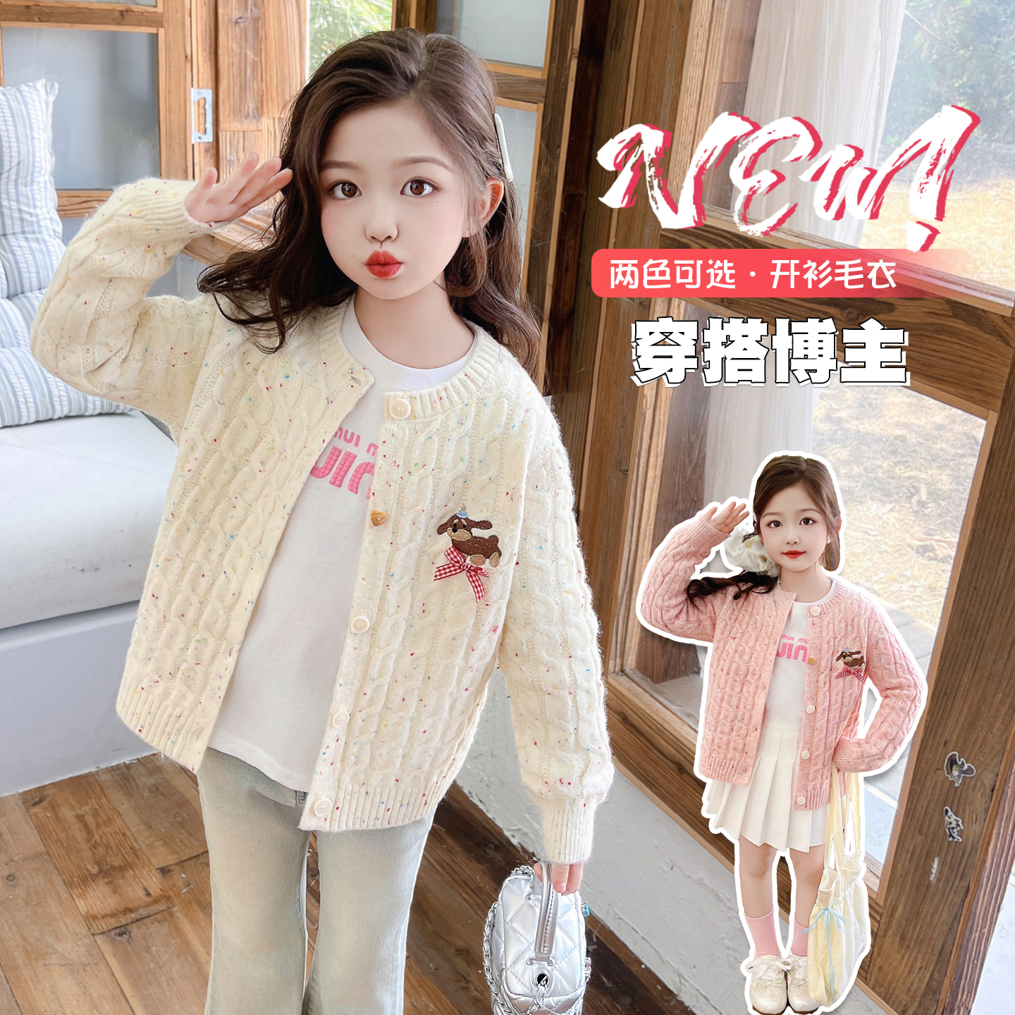 女童洋气针织开衫秋装2025新款女孩时髦外搭上衣儿童毛衣外套秋冬