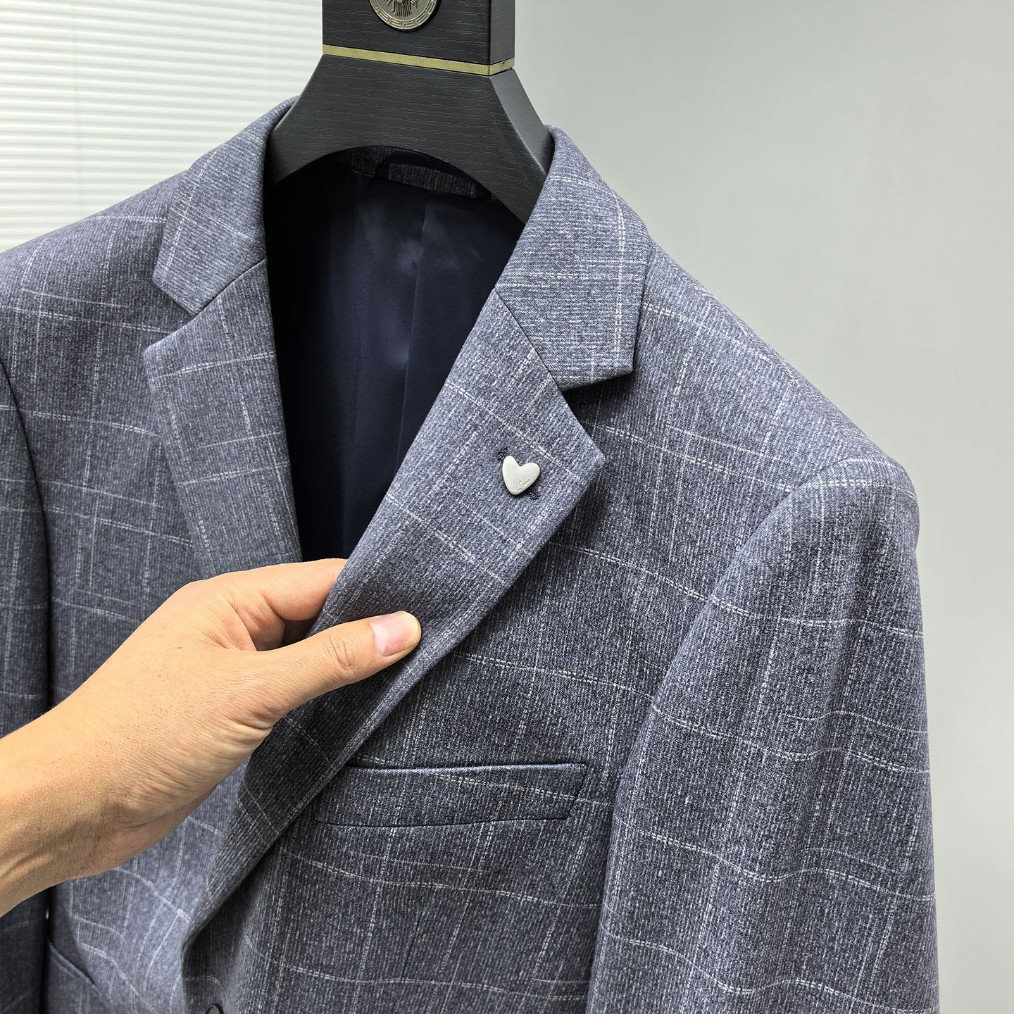 H系撤柜!简约细格纹肌理!男士商务休闲春秋单西西装西服外套