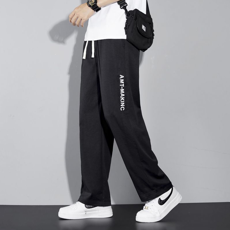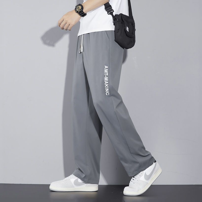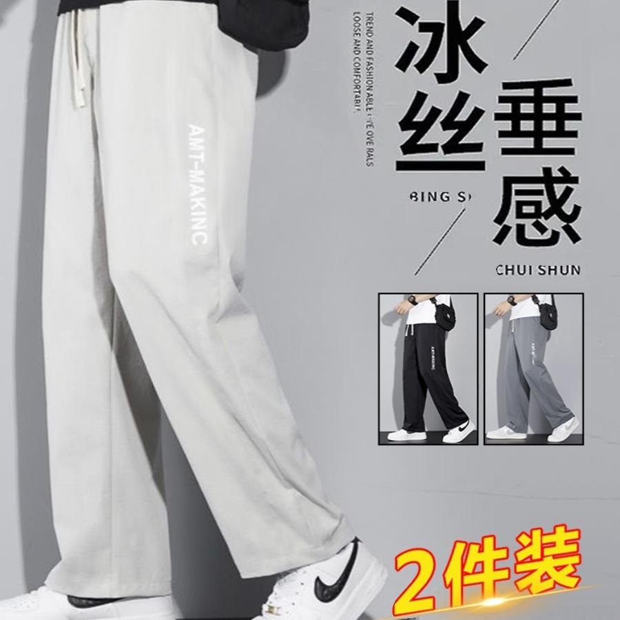 2件】冰丝裤子男夏季薄款速干直筒宽松运动长裤潮流潮牌休闲裤男