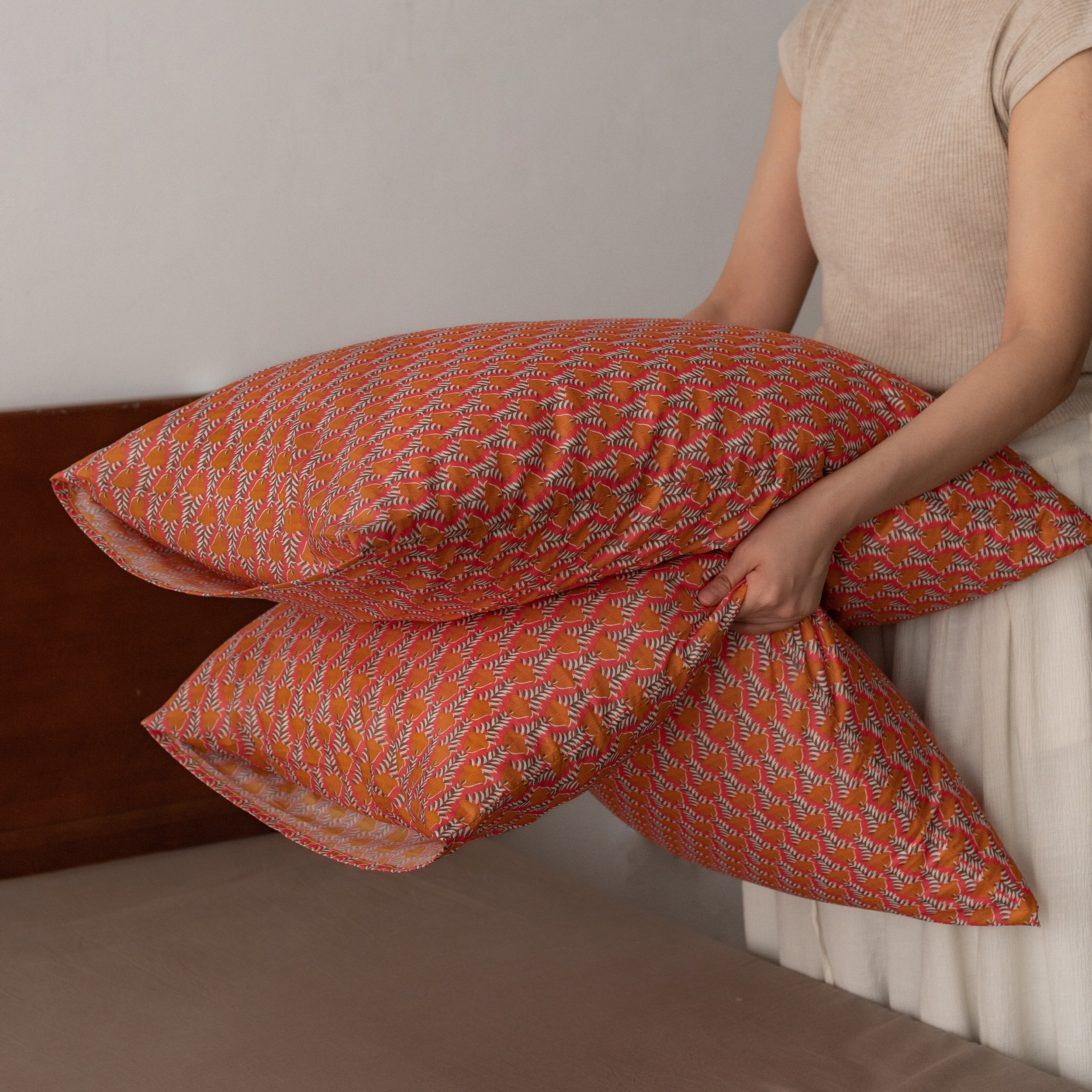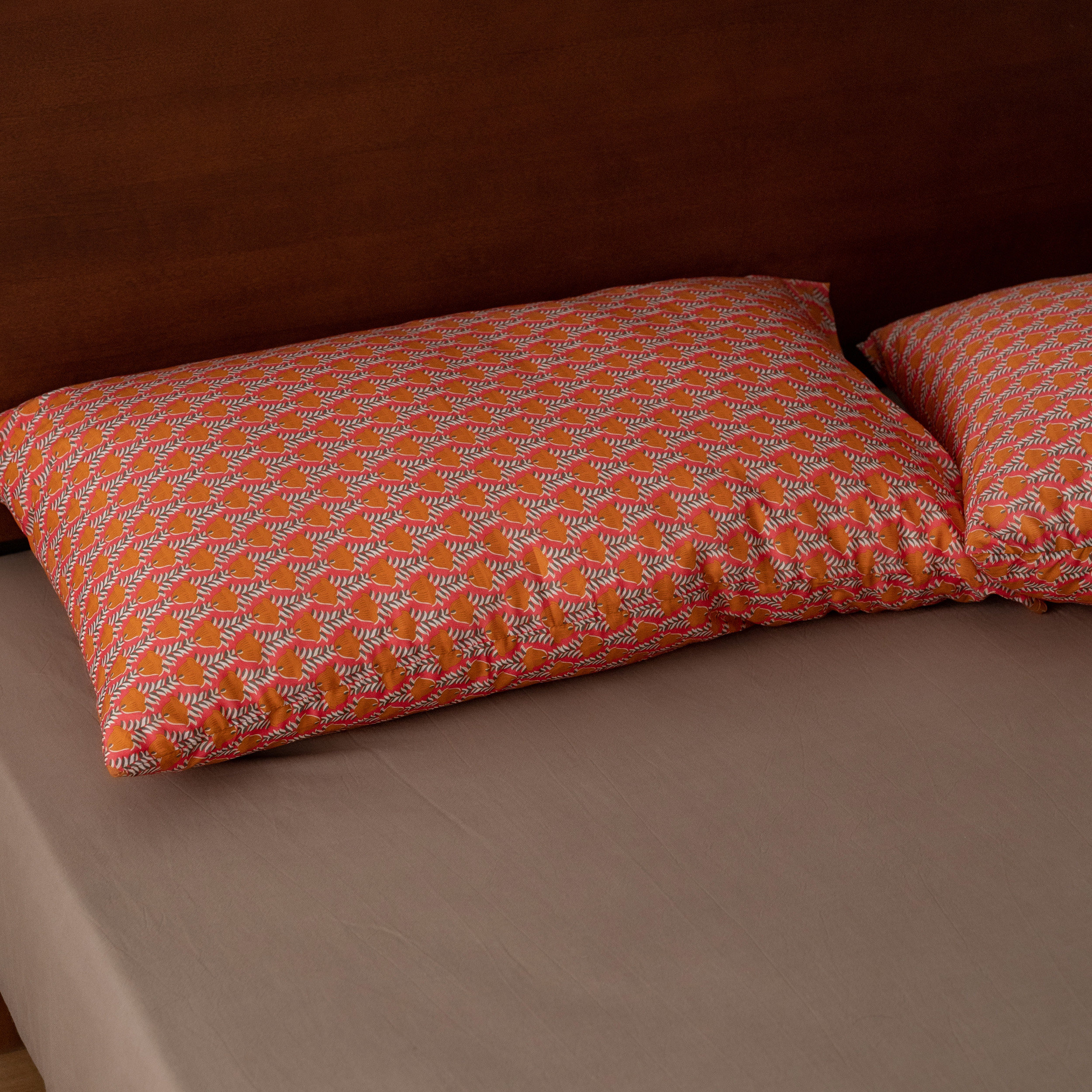 风铃花纯棉枕套单人全棉柔软亲肤家用防头油复古枕头套一对装成人