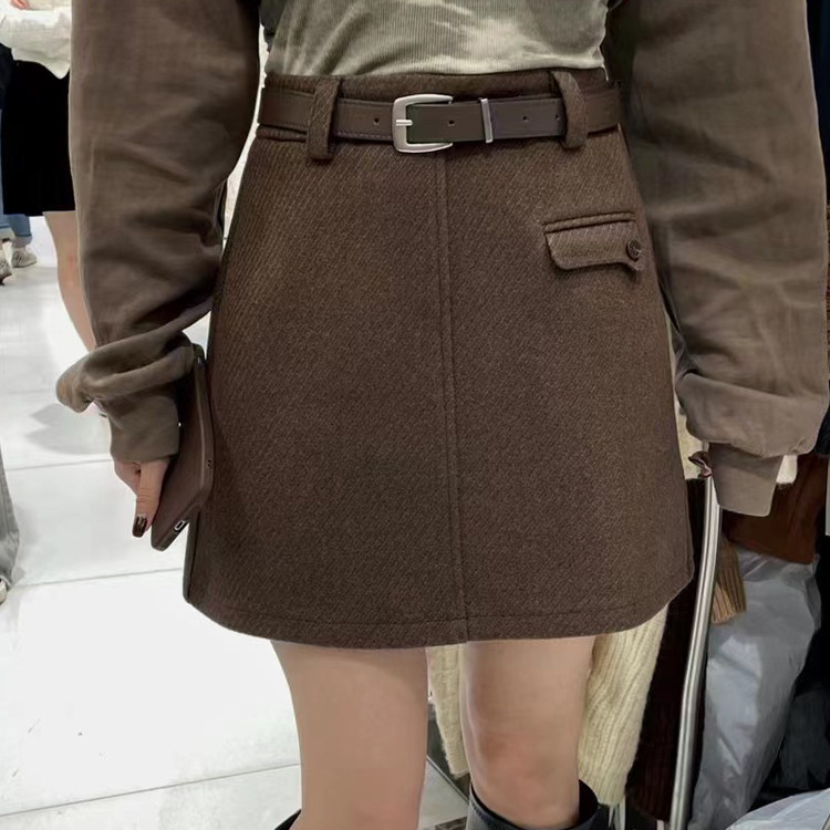 希贝尔毛呢短裙女2025冬季高腰防走光a字裙时尚百搭呢子半身裙子