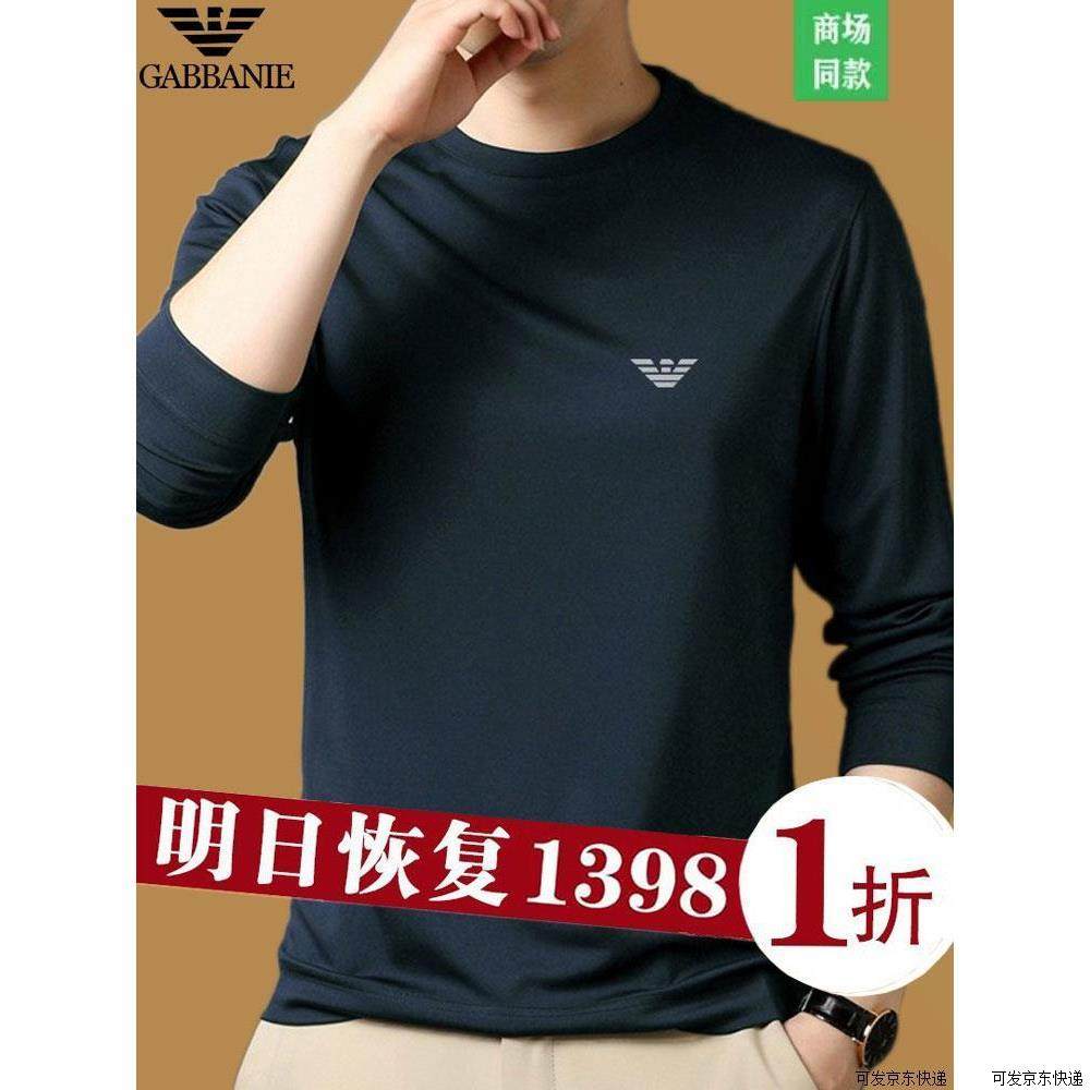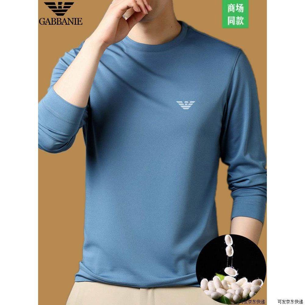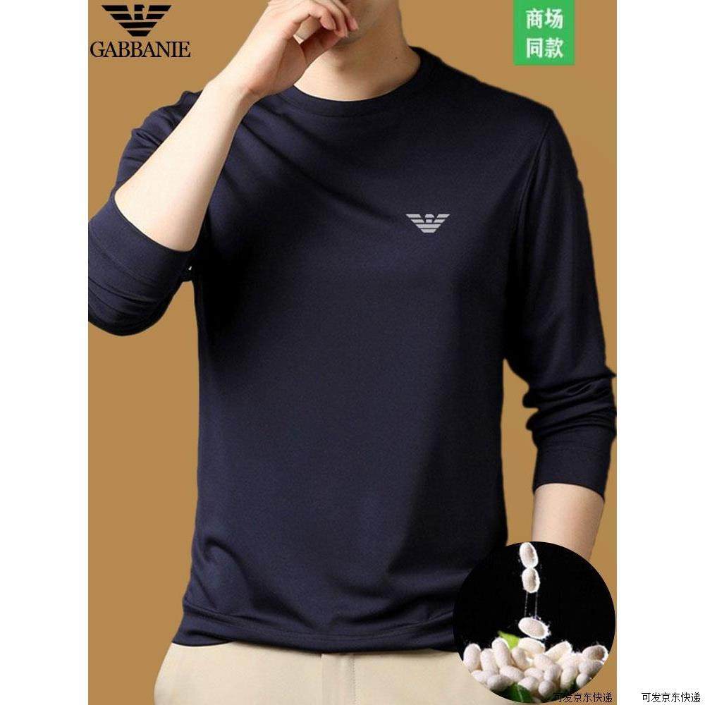 正品意大利 桑蚕丝长袖T恤男士圆领春秋新款中青年高端打底衫上衣