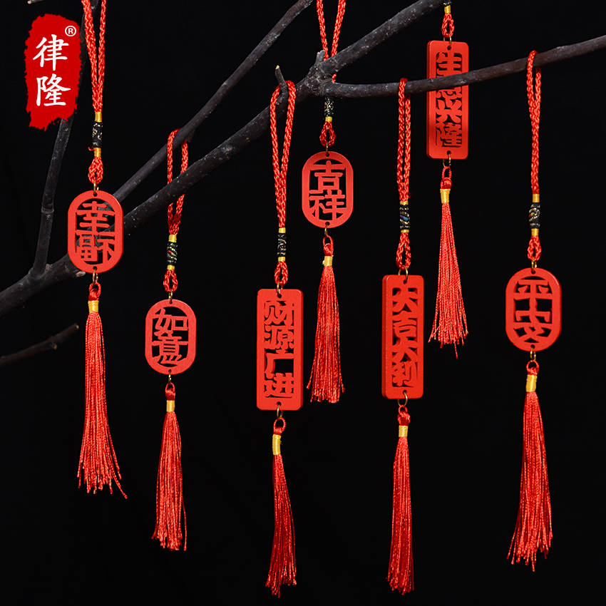 律隆木质字牌过年装饰小挂件福字中国结挂饰春节新年国风场景布置