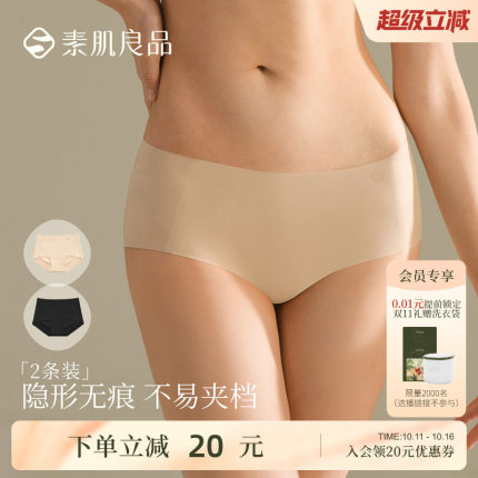 素肌良品中腰无痕内裤女纯棉底裆一片式舒适裸感透气三角裤三条装