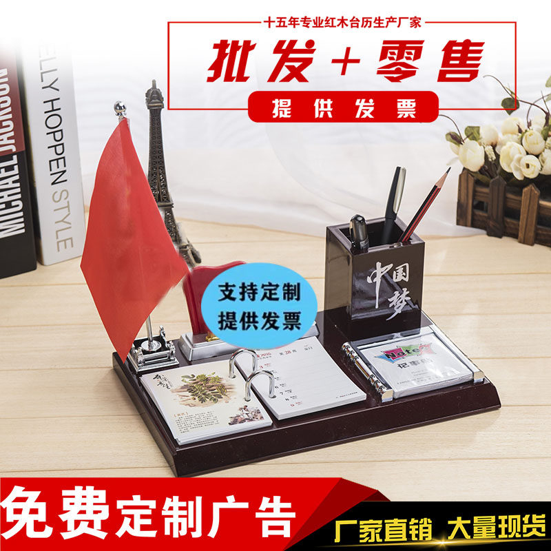 2026年台历架定制商务办公桌面日历记事创意木质笔筒摆件印刷logo