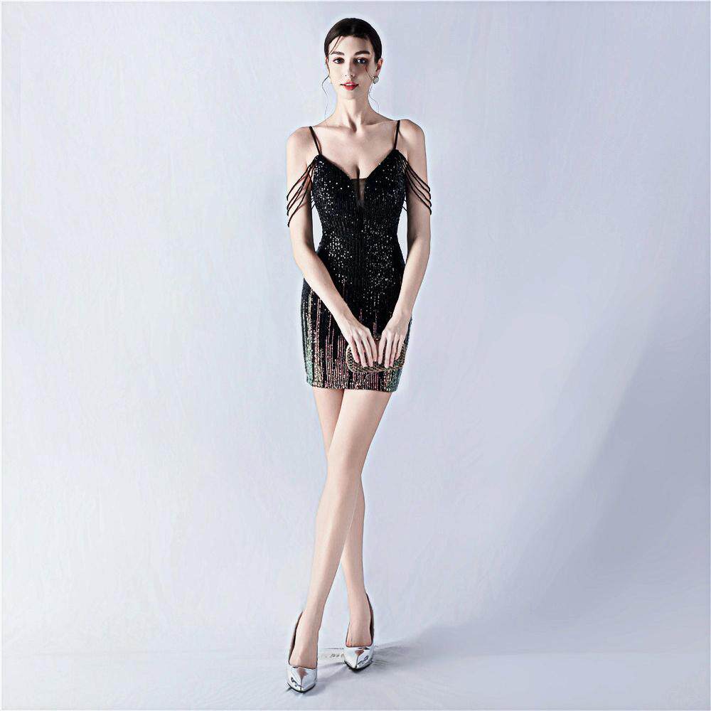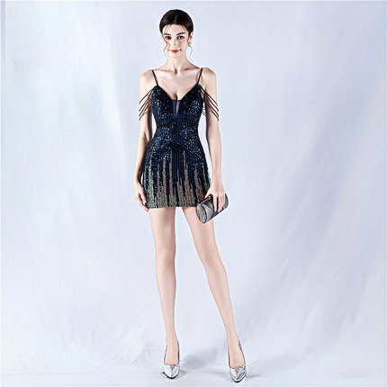 晚礼服女小个子高端精致气质名媛宴会性感包臀亮闪短款吊带连衣裙