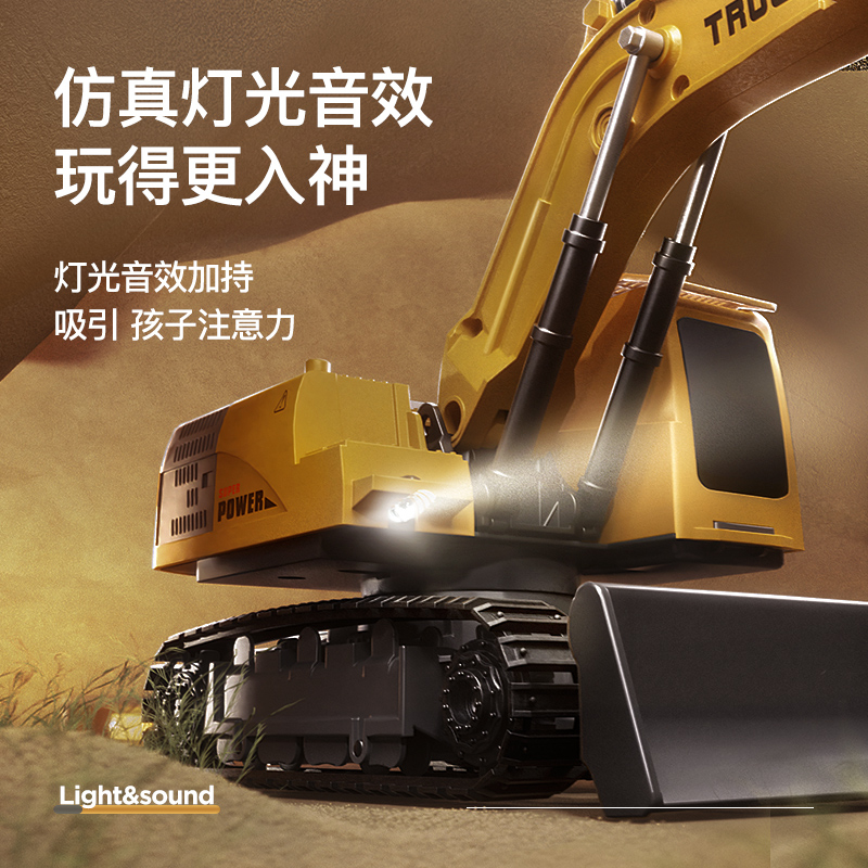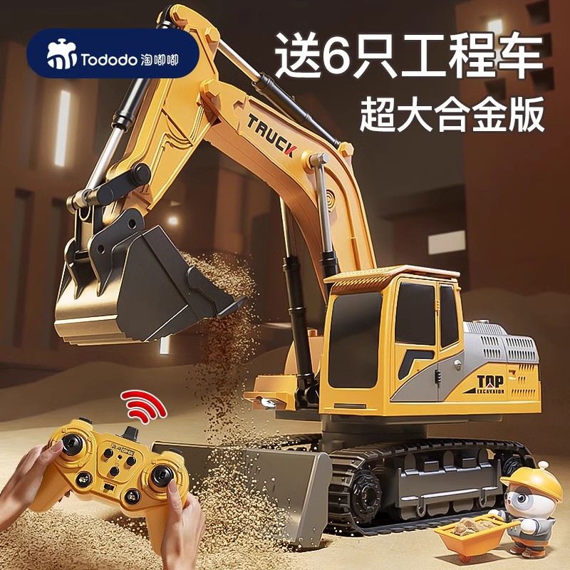 淘嘟嘟合金儿童遥控挖掘机玩具男孩电动挖土机汽车工程车3岁6礼物