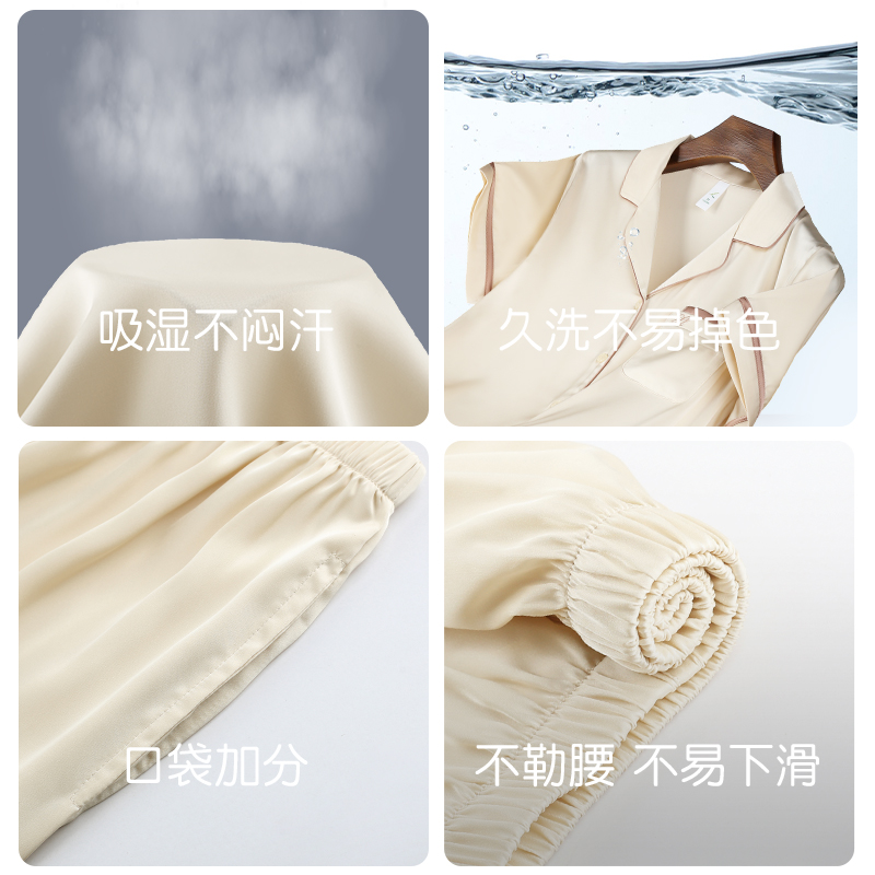 轩靓情侣睡衣女夏季冰丝短袖长裤