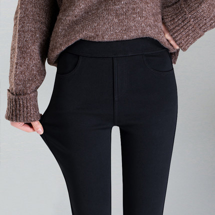 松紧腰小脚黑色弹力打底裤女外穿春秋薄款高腰显瘦铅笔紧身长裤子