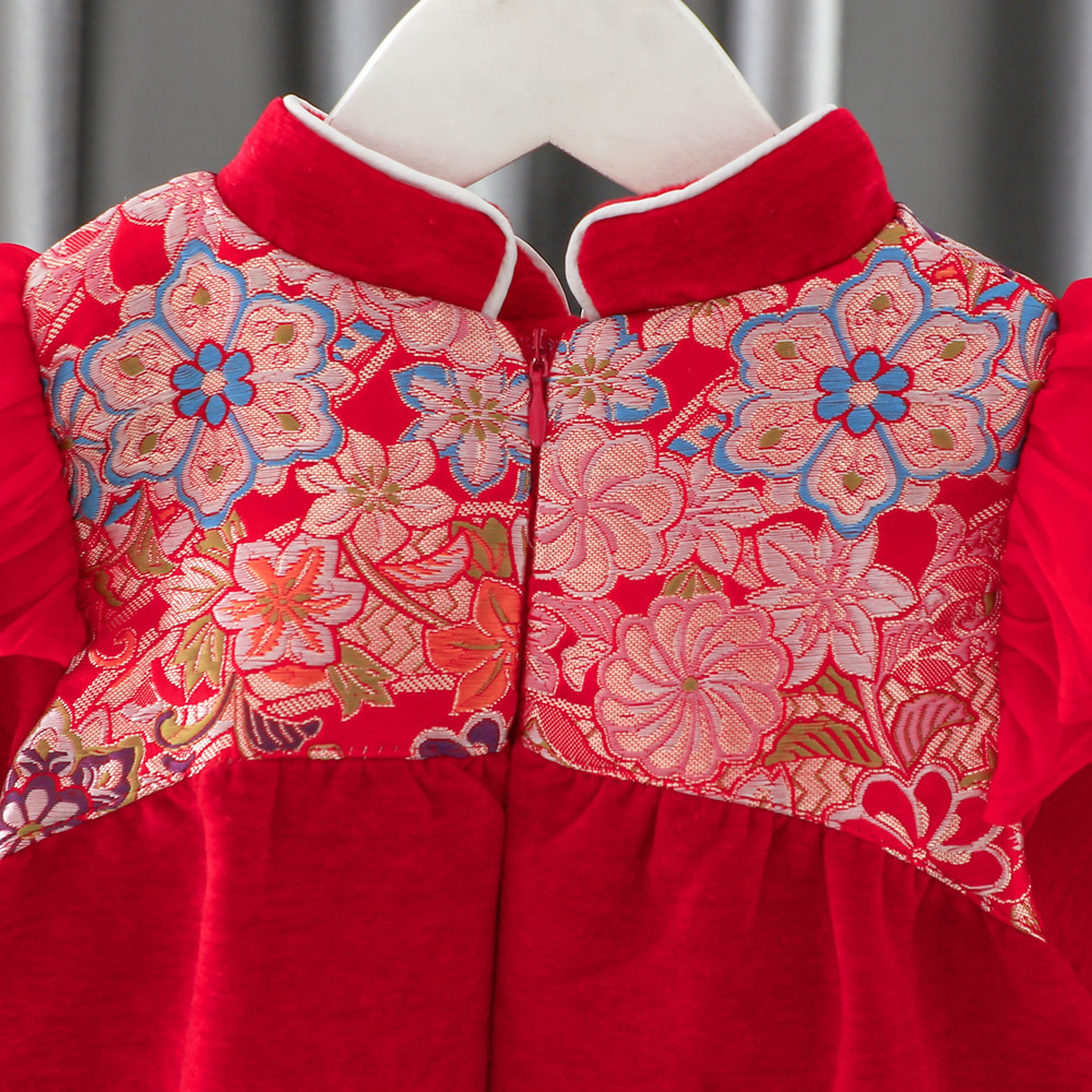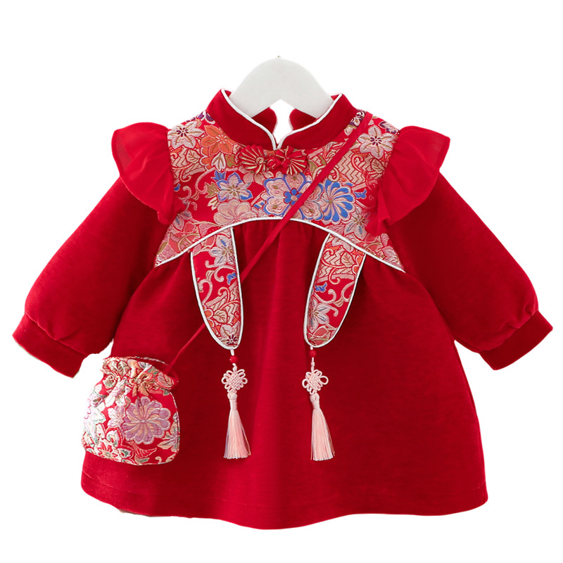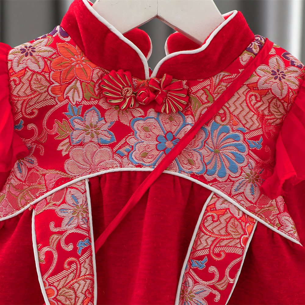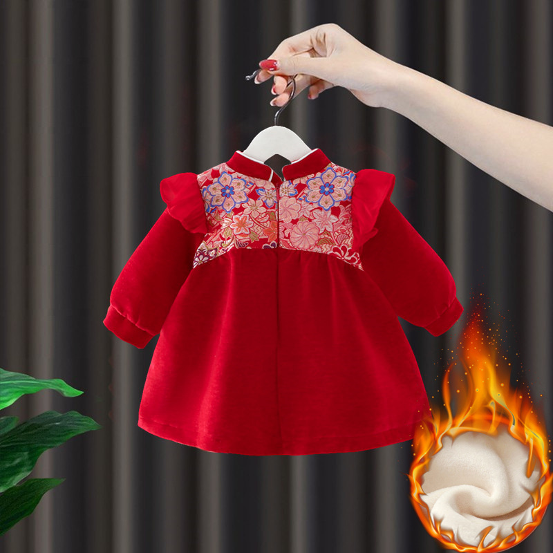 汉服女童连衣裙秋冬装宝宝周岁衣服加绒儿童唐装中国风过年拜年服