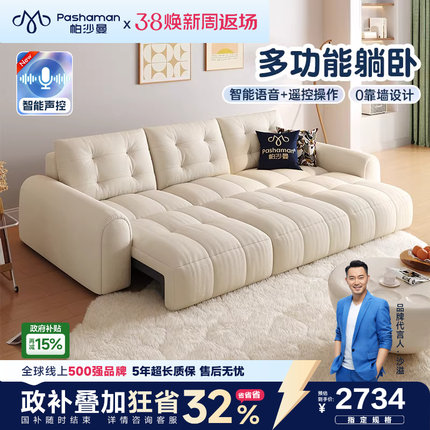 帕沙曼电动沙发床泡芙布艺客厅小户型奶油折叠伸缩零靠墙功能沙发