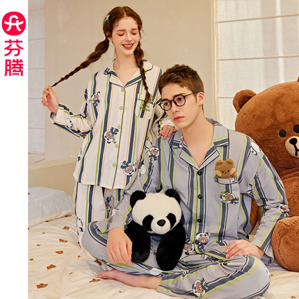 芬腾布朗熊情侣睡衣春秋纯棉长袖
