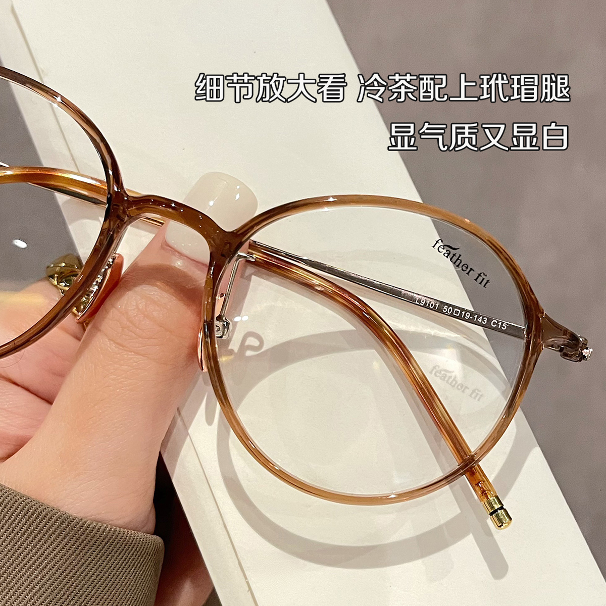 韩系玳瑁色近视眼镜女显白冷茶