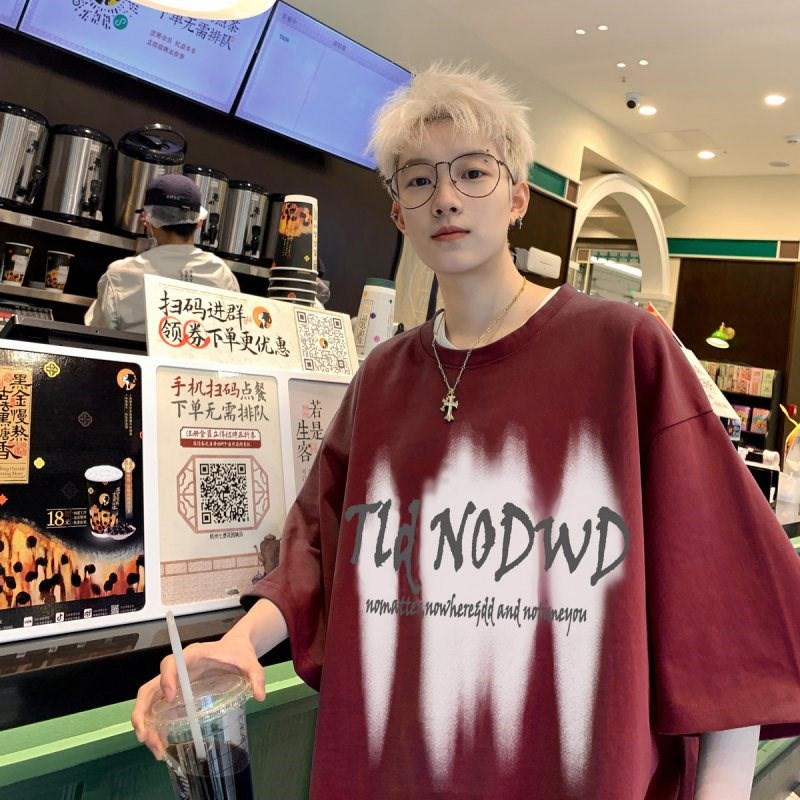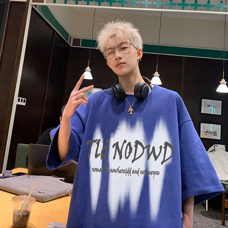 夏季新款短袖t恤男生薄款纯棉体恤衫港风ins潮流大码宽松五分半袖
