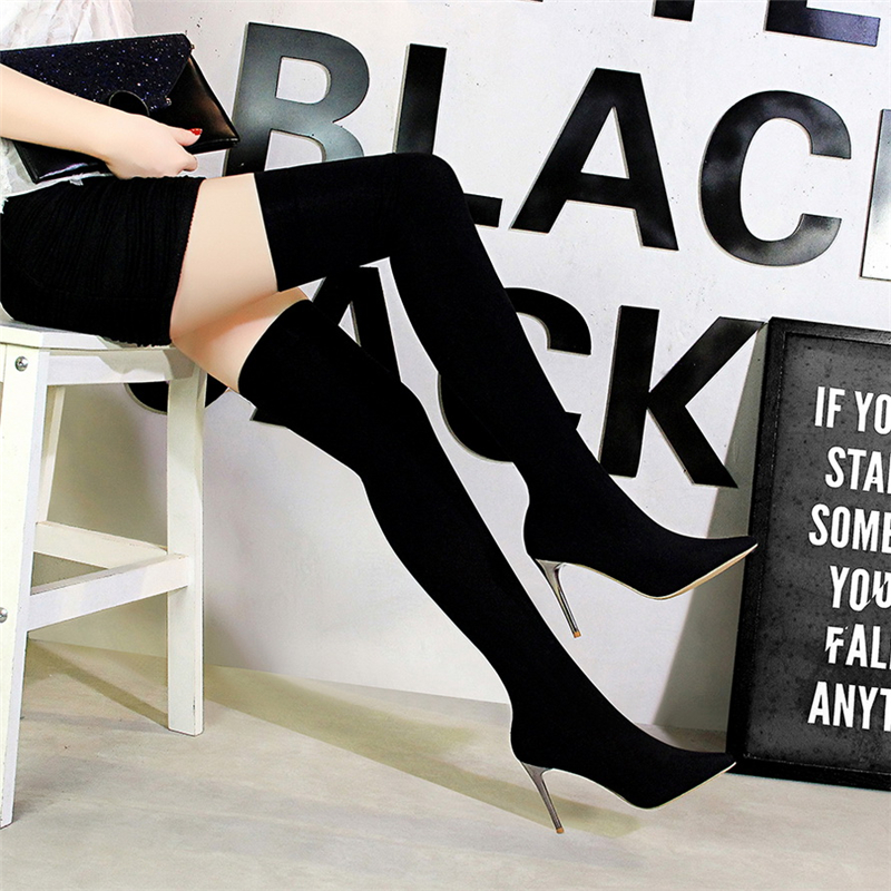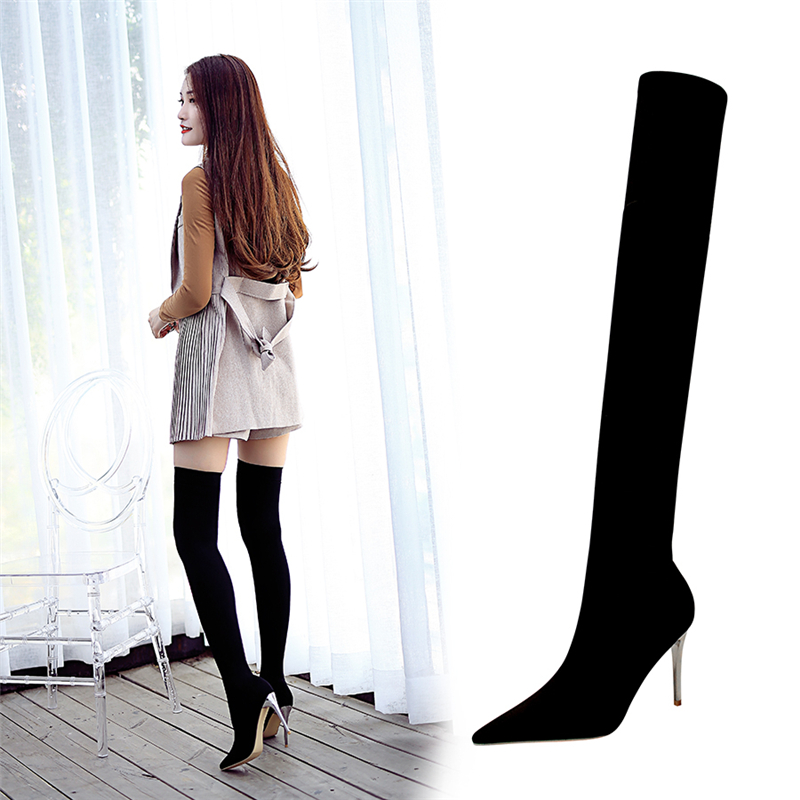 欧美风性感女长靴细跟高跟靴子夜店显瘦情趣尖头过膝长靴弹力袜靴