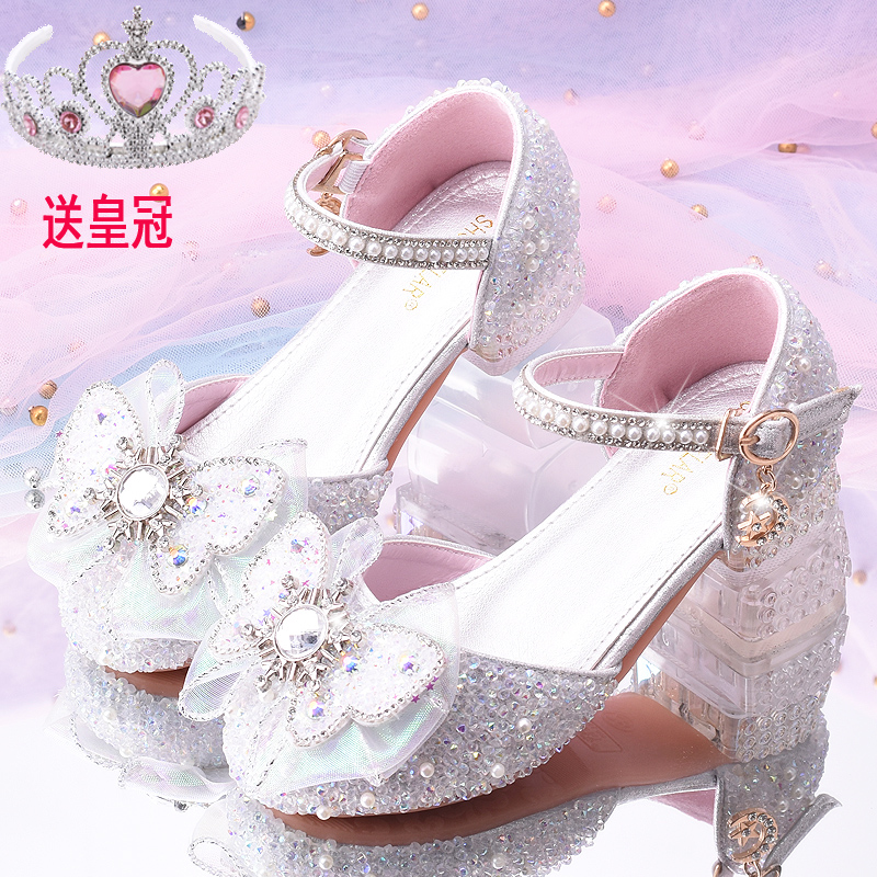 女童凉鞋2023夏季爱莎水晶鞋女孩高跟鞋儿童水钻公主鞋学生礼服鞋